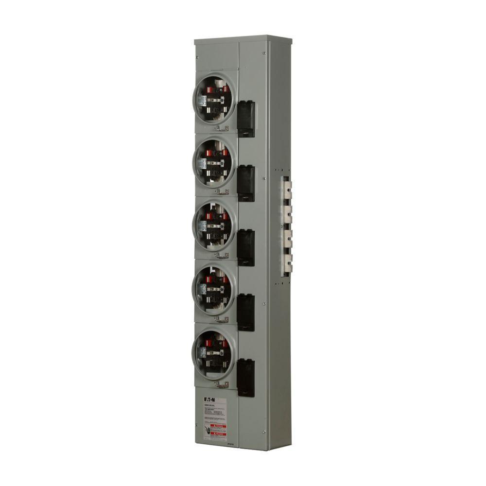 EATON Meter Stack Module, 5-Jaw 5-Socket Multiple Metering, Series: 3MM, 120/208 VAC, 125 A, 1/3 ph, 4 Wires, 14 to 2 AWG, 6 to 2/0 AWG Al/Cu Wire, 100 kA Short Circuit, Bus Bar Connection, Galvanized Steel, NEMA 3R Enclosure, 55-1/2 in L x 15-1/2 in W x 8-1/2 in D Dimensions