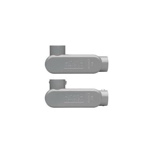 EATON Crouse-Hinds Condulet® SnapPack™ Conduit Outlet Body, Type LR, 1/2 in Hub, 2 Hubs, 4.35 cu-in Capacity, 5, NEMA 4 Enclosure, Threaded/Set Screw, Surface Mount, Die Cast Copper-Free Aluminum, Epoxy Powder Coated, Gray, 4.4 in L x 2.06 in W x 1.4 in H