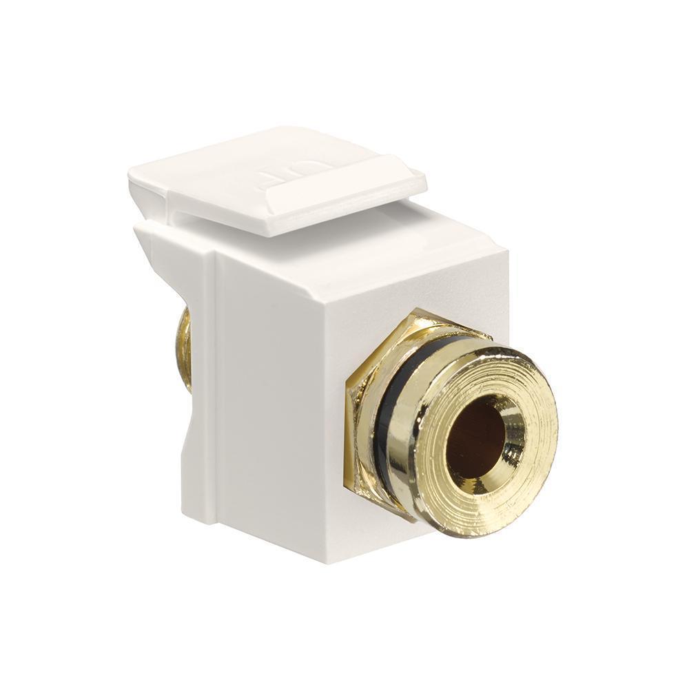 The banana jack QuickPort® connector provides audio connectivity for speaker wire. The connector snaps into any QuickPort® housing flush and surface mount outlets, multi-media outlet system (with adapter), Decora® inserts, patch panels and patch blocks.