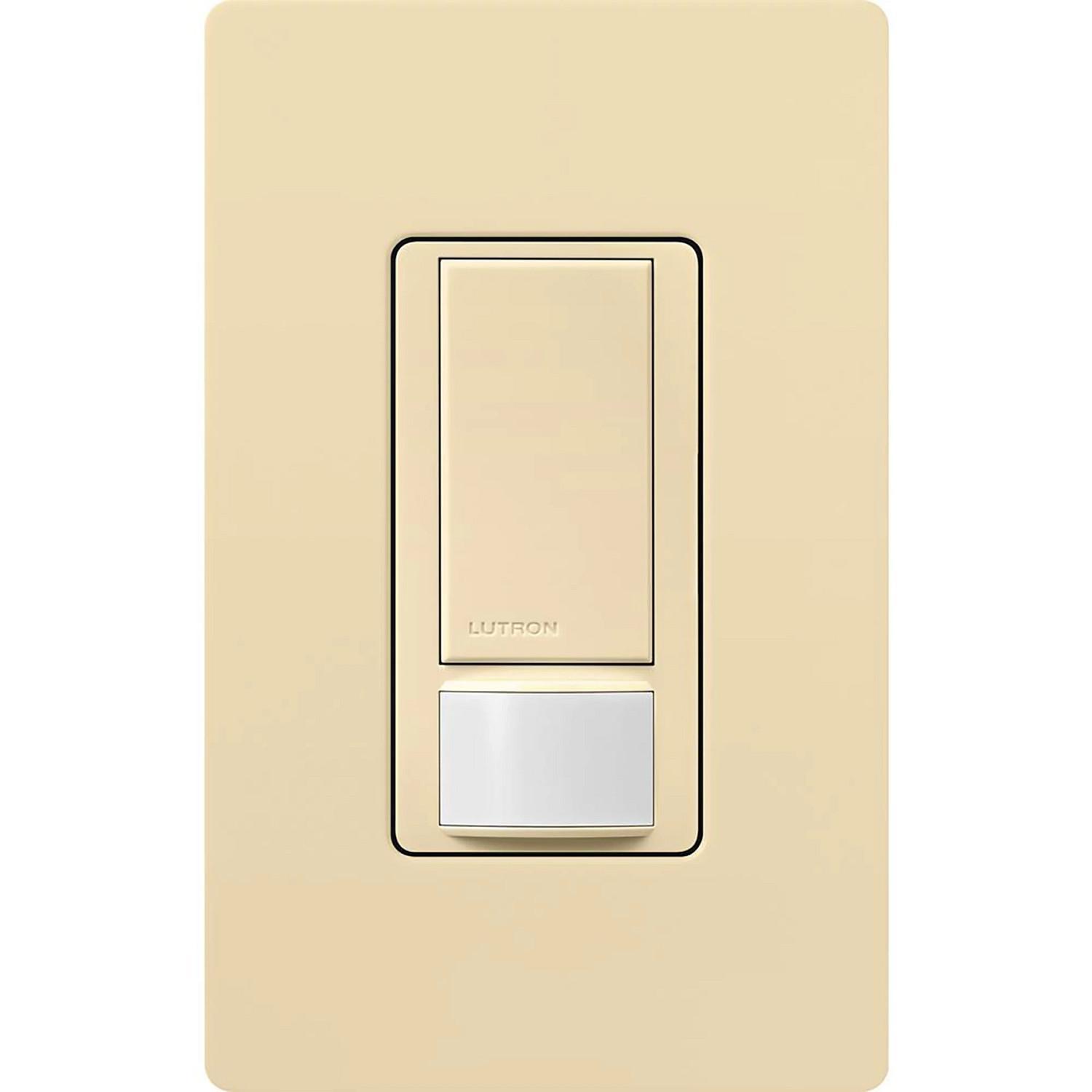 The Lutron Maestro Motion Sensor Switch features Lutron’s advanced motion sensing technology to automatically turn the lights on and off, or manually toggle the lights with the tap switch. The Motion Sensor Switch is rated up to 5A for any lighting type, 3A fan or 3A for combined light/fan. Install in a single pole, 3-way with one existing switch, or with Maestro companion switches (MA-AS/MSC-AS) to switch from up to 9 locations. The passive infrared (PIR) sensor, covered by a tamper resistant lens, detects heat from occupants moving and has a 180-degree field of view (900 sq ft major motion & 400 sq ft minor motion coverage). Equipped with smart ambient light detection (ALD), you can customize your sensor to detect daylight, so lights don't turn on when enough natural light is present in the room. Unlike other manufacturers, Lutron sensors use Cross Correlation Technology (XCT) to also detect fine motion, such as typing at a desk or reading a book – ensuring lights won’t turn off inadvertently when you’re still in the room. Lutron sensors also have an adjustable timeout (1, 5, 15 or 30 minutes) to control how long the lights stay on after leaving the room. Switch the sensor to vacancy mode to meet Title 24 requirements: lights only turn on with a manual press of the tap switch but automatically turn off if the sensor no longer detects motion. The sensitivity of the PIR sensor can also be changed so it only detects larger motion Available in 10+ colors. Pairs perfectly with Lutron Claro wall plates for consistent color matching (sold separately).