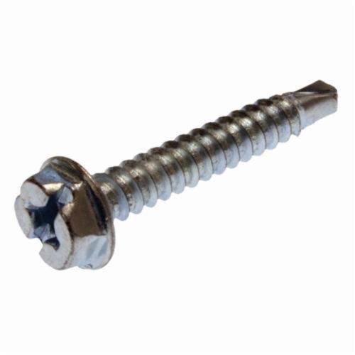 Self Drilling and Tapping Screw, Steel material, #10 Size, 1/2 in. length, 1/4 in. head width, Hex head, Zinc Chromate finish, 100 per pack, Swaged point type, #2 driver size. For use with MT208B Chuck.