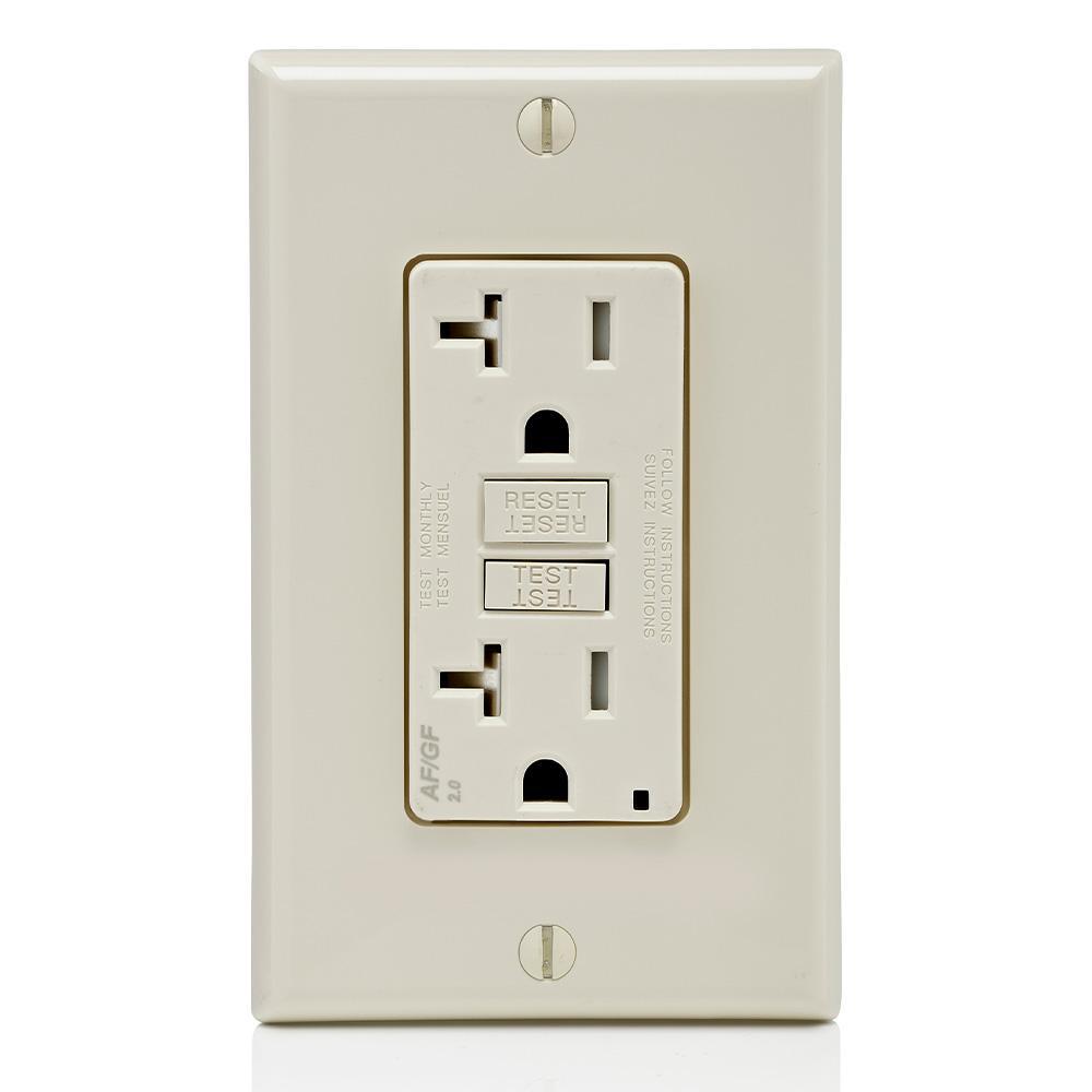Leviton® Decora® AFCI/GFCI Receptacle, Dual Function Monochromatic Tamper-Resistant, 125 VAC, 20 A, 1 hp, 2 Pole, 3 Wires, NEMA 5-20R Rating, -35 to 66 deg C, Back/Side Wire Terminal, Polycarbonate, Light Almond, 1.68 in W x 1.38 in D x 4.21 in H Dimensions
