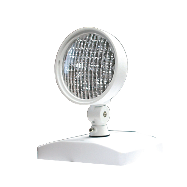 High-impact, engineering-grade thermoplastic construction. Reflector provides emergency lighting to the egress surface. Must be connected to a 9.6V DC emergency battery source. Available in both single and double head options. Adjustable swivel