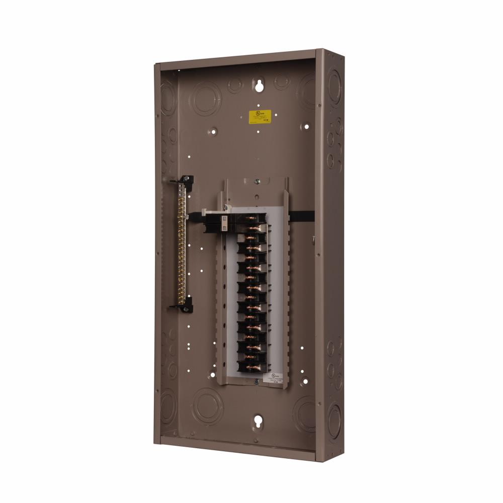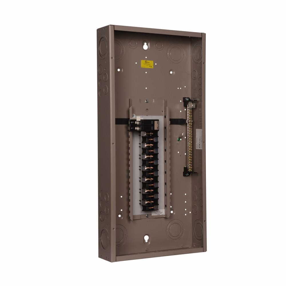 EATON Main Circuit Breaker Load Center, 1-Phase Type CH Standard, 120/240 VAC, 100 A, 30 Pole, 10 kA Interrupt, 30 Circuits, CH Breaker, 3-Wire Wiring Configuration, 30 Spaces, 6 to 1/0 AWG Wire, Surface Mounting, NEMA 1 Enclosure, NEMA D Enclosure Box, Metal Housing Material, 29.13 in L x 14.31 in W x 3.88 in H Dimensions