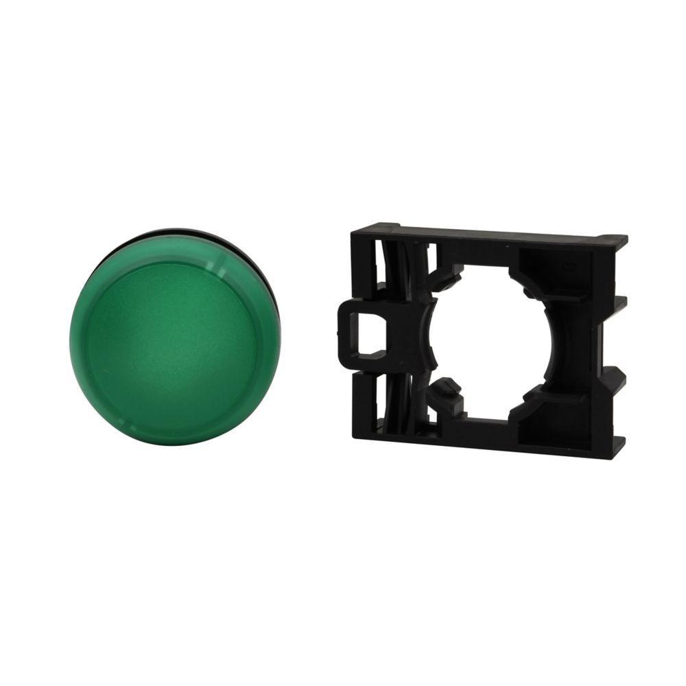 EATON RMQ-Titan® Illuminated Indicating Light Operator, Modular Resistor, Series: M22, 22.5 mm Size, Momentary Contact Mode, 120/240 VAC, Flush Button Operator, LED Lamp, NEMA 4X/13/IP66/IP67/IP69K Enclosure, -13 to 158 deg F, Plastic, Green