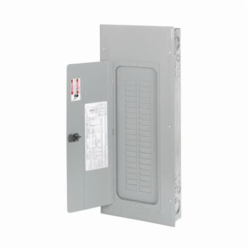 EATON Main Lug Loadcenter, 1-Phase Metallic, 120/240 VAC, 200 A, 40 Pole, 25 kA Interrupt, 40 Circuits, BR Breaker, 3-Wire Wiring Configuration, 40 Spaces, 1 AWG to 300 kcmil Wire, Flush Mounting, NEMA 1 Enclosure, NEMA G1 Enclosure Box, 3.88 in L x 14.31 in W x 34.13 in H Dimensions