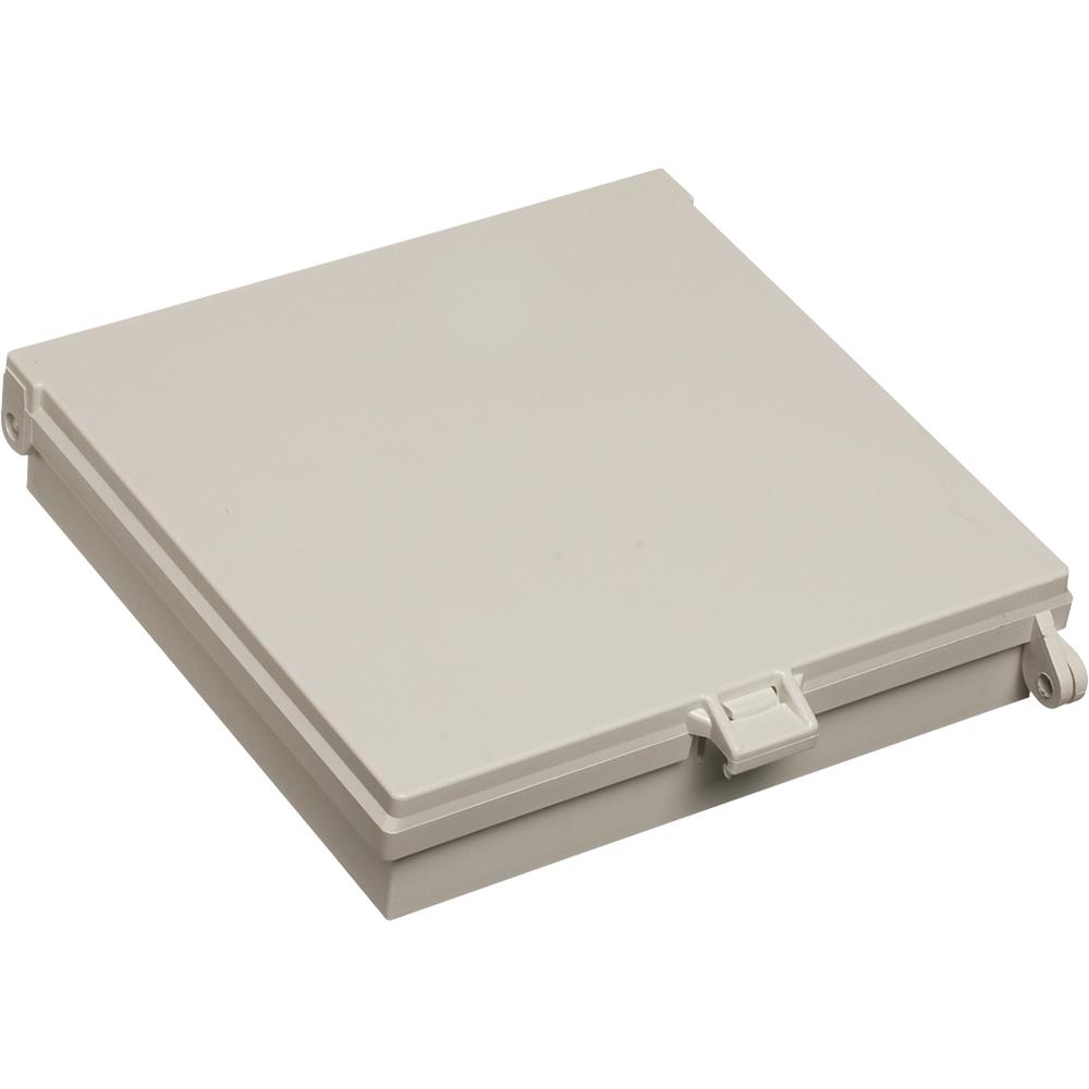 Arlington Keypad Enclosure, 2-Gang Non-Metallic Weatherproof, 8.48 in Width, 1.81 in Depth, 8.14 in Height, Paintable Cover, 7-1/2 in W x 1-1/2 in D x 7-1/2 in H Panel, Lock: Latch, Surface Mount, Plastic, White