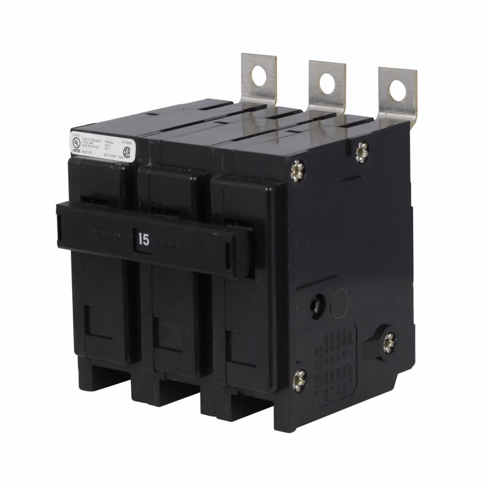 EATON QuickLag® Miniature Circuit Breaker, Type BAB, 240 VAC, 15 A, 10 kA Interrupt, Thermal Magnetic Trip, 3 Pole, Extended Tang Line/Box Lug Load, 14 to 4 AWG Wire, Bolt-On Mount, 40 deg C, 3.8 in L x 3.2 in W x 4.9 in H