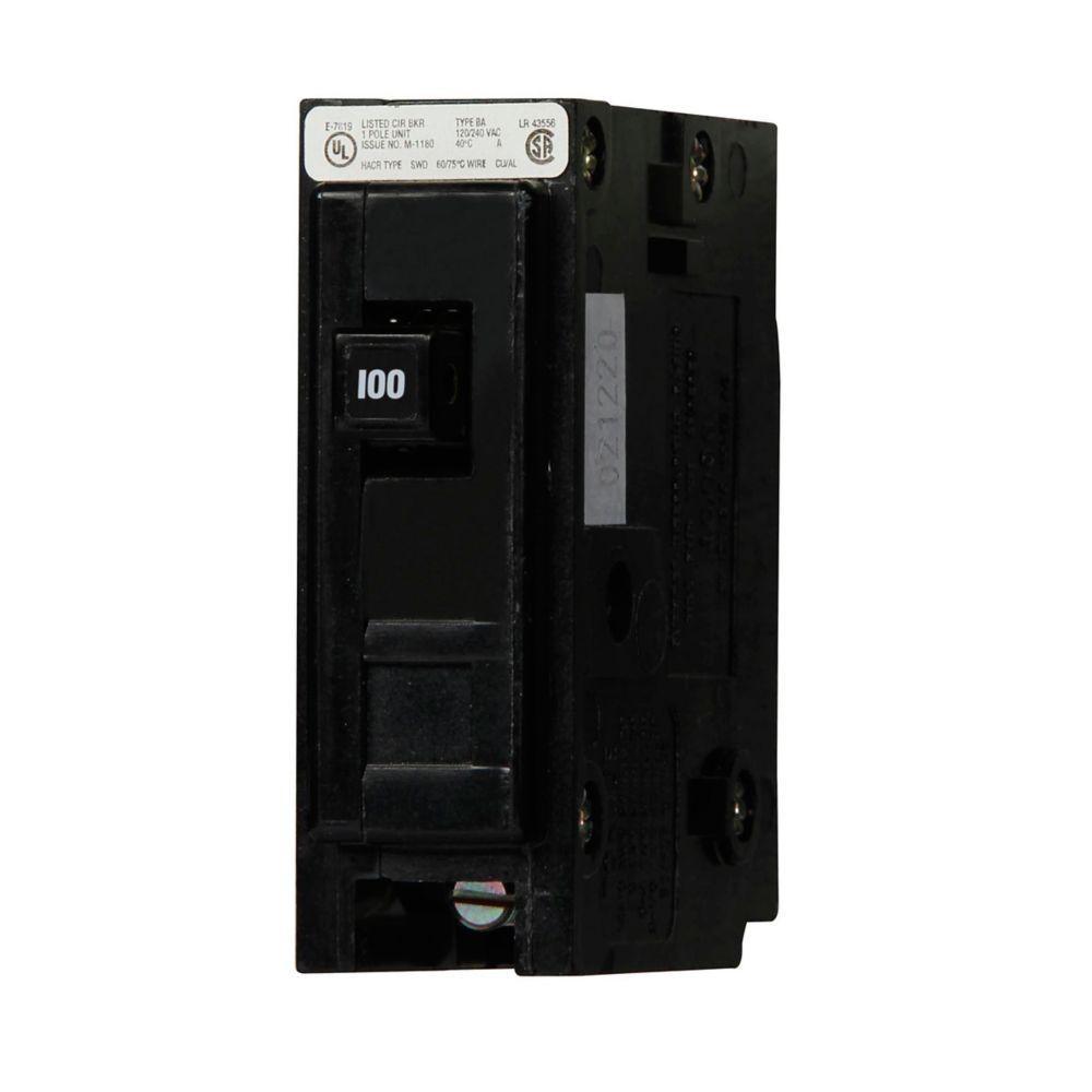 EATON QuickLag™ Miniature Circuit Breaker, Type BAB Non-Automatic, 120/240 VAC, 100 A, 60 Hz Frequency, 10 kA Interrupt, Thermal Magnetic Trip, 1 Pole, 1 ph, Extended Tang Line Terminal Connection, 8 to 1/0 AWG Wire, Bolt-On Mounting, 40 deg C, 3.6 in W x 1 in D x 3.6 in H Dimensions
