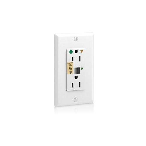 Leviton®, 8280-IGW, Surge Protective Receptacle, 2-Pole 3-Wire Type 3-Duplex Isolated Self-Grounding, 125 VAC, 15 A, 5 kA Short Circuit, Straight Blade Receptacle Outlet, Indicators: Audible Alarm/Light, Back/Side Wired Connection, Surface Mounting, 3.81 in H x 1.7 in W x 1.47 in D Size, -40 to 60 deg C Operating, Polycarbonate, White, Environmental Conditions: -40 to 60 deg C Operating Temperature, UL 94 V-2 Flammability Rated