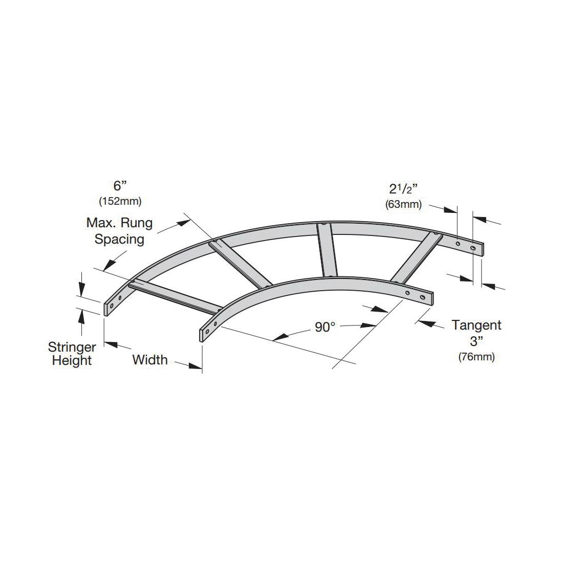 B-Line SB17HRB24FB Universal Runway Bend, 1-1/2 in H Side Rail, 6 in Rung Spacing, 90 deg Bend, Structural Steel
