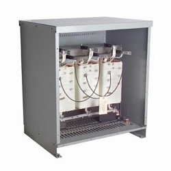 Units are enclosed in a NEMA 2 drip proof metal enclosure with natural-draft ventilation. Core-and-coil assembly is mounted on rubber isolation pads to reduce noise. Weather shield kits are available for conversion to a NEMA 3R enclosure suitable for outdoor service. NEMA 3R stainless steel (Type 316) enclosure is available up to 150kVA.