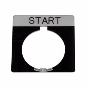 Cutler-Hammer Legend Plate, Standard, Series: 10250T, Square Plate Shape, Pushbutton Operator, START Legend, White Legend, 1.7 in Height, 1.7 in Width, Black Field