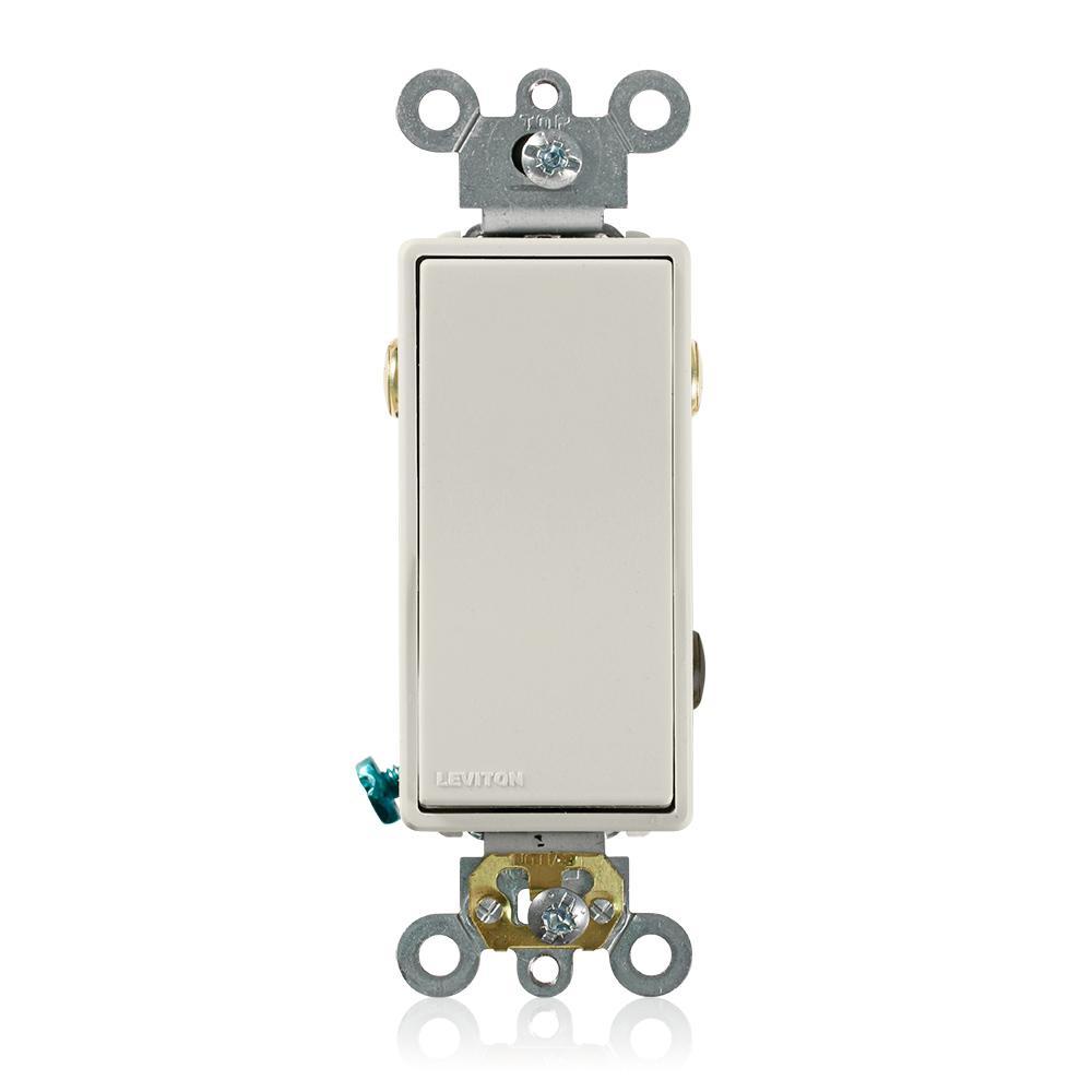 Leviton®, 5623-2T, Self-Grounding AC Quiet Switch, 120/277 VAC, 20 A, 1 hp, 2 hp Power, 20 A at 120/277 VAC Contact, Maintained/Momentary Action, Rocker Actuator, Surface Mounting, Back/Side Wire Terminal, 50000 Cycles Operating Cycles, Thermoplastic, Light Almond, Environmental Conditions: -40 to 120 deg C Operating Temperature, 46 in H x 1.76 in W x 1.6 in D Dimensions