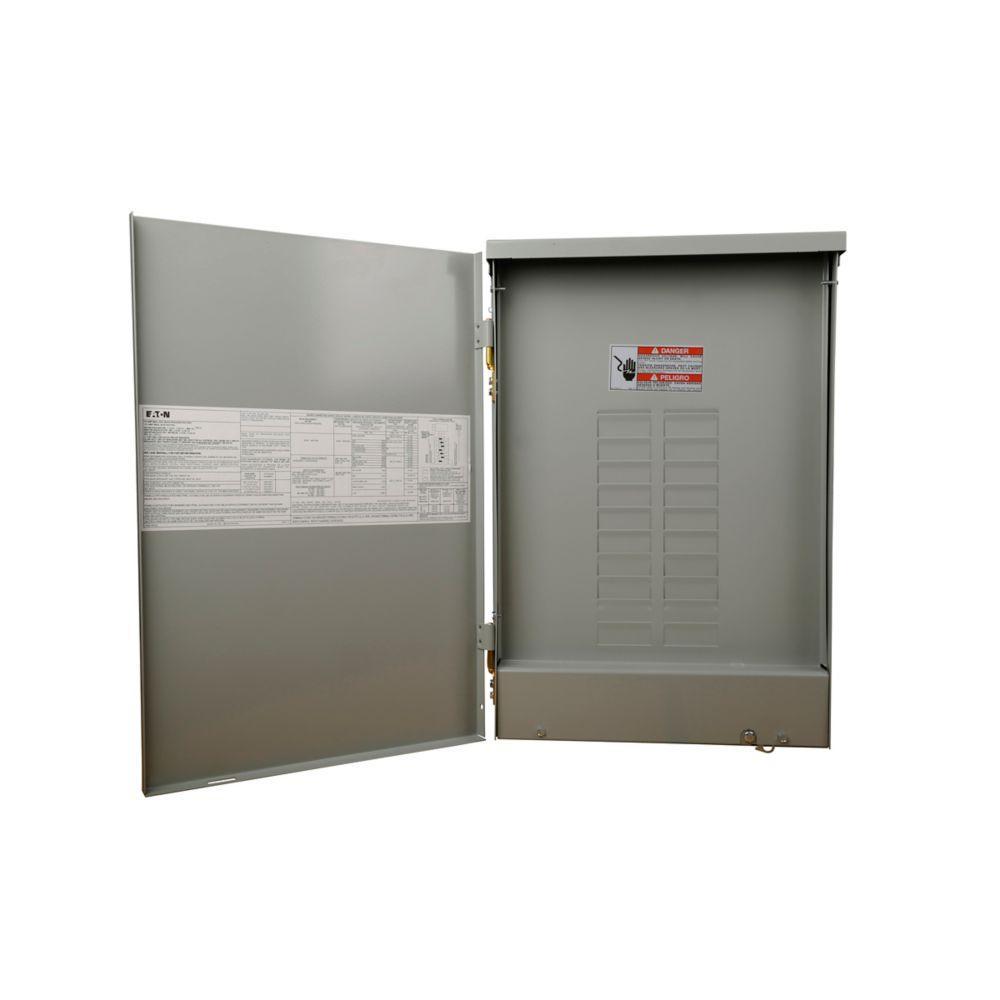 EATON Main Lug Loadcenter, 3-Phase Metallic, 120/208Y/240 VAC, 125 A, 24 Pole, 10 kA Interrupt, 24 Circuits, BR Breaker, 4-Wire Wiring Configuration, 12 Spaces, 6 to 2/0 AWG Wire, Surface Mount, NEMA 3R, NEMA C1R Enclosure Box, 5.19 in L x 14.31 in W x 21 in H
