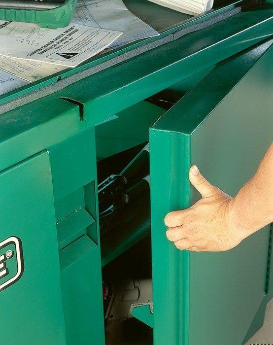 Greenlee® Storage Box Assembly, 41.6 in Width, 55.6 in D, 80 in Height, 116.5 cu-ft, Recessed Handle, 16 ga Steel, Green