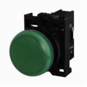 Cutler-Hammer Indicating light, Non Relampable, Series: M22, 85 to 264 VAC, Green Lens, Plastic Lens, LED Lamp, Green, 22.5 mm, 100000 hr Average Life, NEMA 4X/13/IP67/69K, Flush Mount