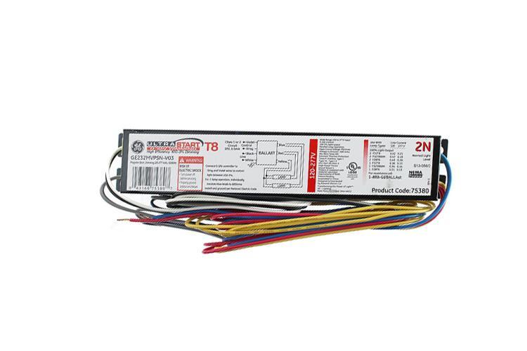 GE UltraStart Electronic Fluorescent Ballast, Dimming Linear, F32T8 Fluorescent Lamp, 32 W Lamp, 56 W Wattage, 277 VAC, 0.21 A, Rapid Start, Yes Dimmable, 2 Lamps, Ballast Factor: 0.86 to 0.89, Normal Ballast Grade, 40 deg C, 9.5 in L x 1.7 in W x 1.18 in H Dimensions