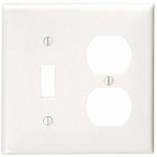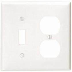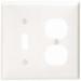 Leviton® Combination Wallplate, Standard Size, 2 Gangs, 4.5 in H x 4.56 in W Size, 0.942 in H x 0.406 in W Toggle, Duplex Receptacle Cutout, Surface Mounting, 0.22 in Thickness, Thermoplastic, White