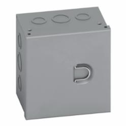 B-Line Junction Box, 6 in Length, 6 in Width, 4 in Depth, NEMA 1/IP30, Hinged Cover, Knockout Cable Entry, Steel, Acrylic Electro Coated, Gray