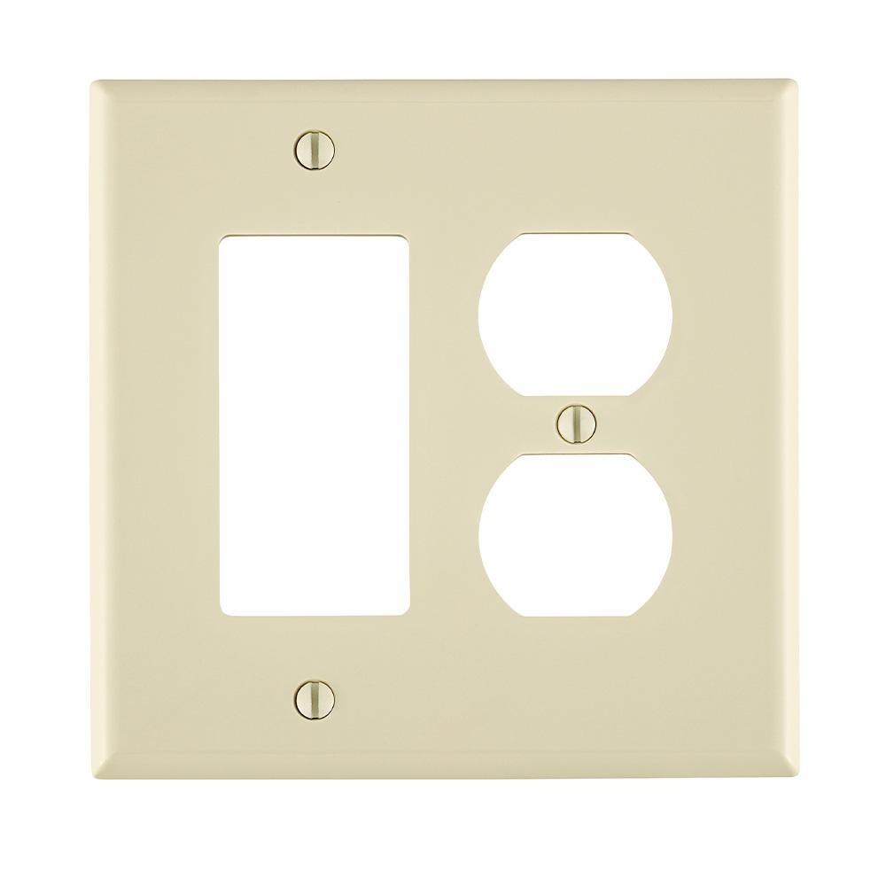 Leviton®, Decora®, PJ826-I, Combination Wall Plate, Midway Size, 2 Gangs, 4.94 in W x 4.875 in H Size, 0.942 in H x 0.406 in W Duplex Receptacle, Decorator/GFCI Cutout, Surface Mounting, 0.255 in Thickness, Thermoset, Ivory, Smooth