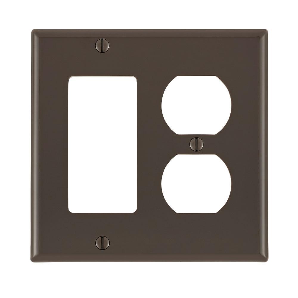 Leviton®, Decora®, 80746, Combination Wall Plate, Standard Size, 2 Gangs, 2-3/4 in W x 4-1/2 in H Size, 0.942 in H x 0.406 in W Duplex Receptacle, Decorator/GFCI Cutout, Surface Mounting, 4.56 in Thickness, Thermoplastic, Brown, Smooth