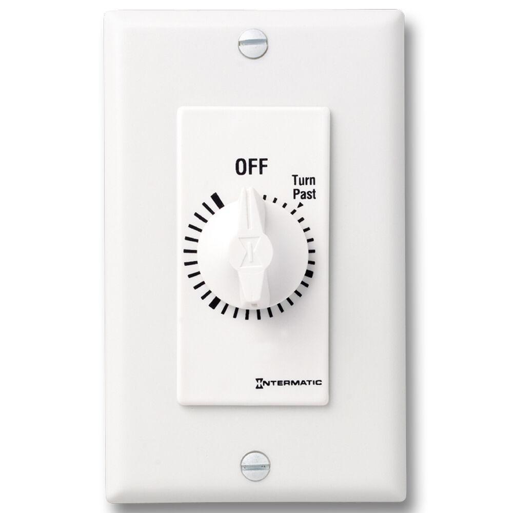 Intermatic® Spring Wound Timer, Auto Off Decorator Mechanical, Series: FD Series, 125/257 VAC, 15 A, 1 hp, 2 hp, 1 Pole, 1NO 1 Form A SPST Contact Form, 2 hr Time Setting, Teeter Electrical Connections, -40 to 104 deg F, Wall Mounting, 2.79 in H x 1.6 in W x 1.19 in D Dimensions