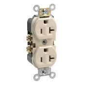 Leviton® BR20-JI 1-Phase Straight Blade Duplex Receptacle, 125 VAC, 20 A, 2 Poles, 3 Wires, Ivory
