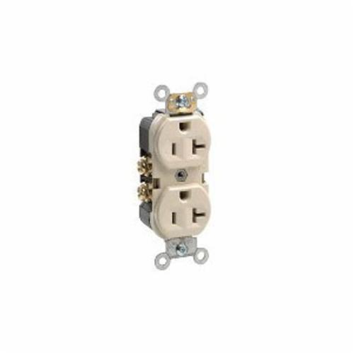 Leviton® Straight Blade Duplex Receptacle, 1-Phase, 125 VAC, 20 A, 1 hp, 2 Pole, 3 Wires, NEMA 5-20R NEMA Rating, Commercial Grade, -40 to 60 deg C, Back/Side Wire Terminal, Nylon, Ivory, 46 in H x 1.33 in W x 19 in D Dimensions