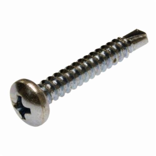 Metallics Self-Drilling and Tapping Screw, #10-16, 1 in Overall Length, Pan Head, Phillips Drive, Steel, Zinc Chromate, Drill Point, #2 Point, 0.122 to 0.133 in H x 0.357 to 0.373 in W Head, UNC Thread, Silver