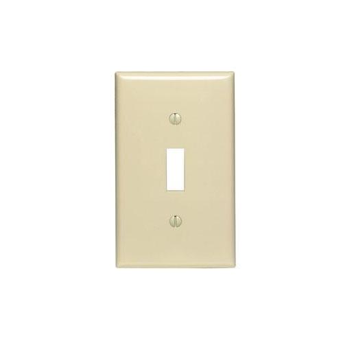 Leviton®, 80701-T, Wall Plate, Standard Size Traditional, 1 Gangs, 2-3/4 in W x 4-1/2 in H Size, 0.942 in H x 0.406 in W Toggle Switch Cutout, Surface Mounting, Molded Construction, 1/4 in Thickness, Thermoplastic, Light Almond, Smooth