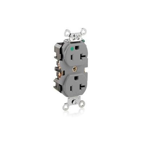 Leviton® 8300-GY 1-Phase Duplex Extra Heavy Duty Straight Blade Receptacle, 125 VAC, 20 A, 2 Poles, 3 Wires, Gray