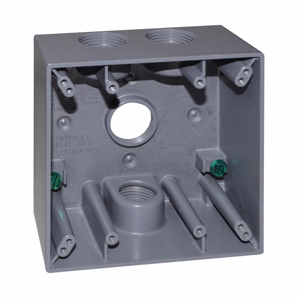 Crouse-Hinds TP7098 Corrosion-Resistant Weatherproof Outlet Box, Die-Cast Aluminum, 30.5 cu-in Capacity, 2 Gangs, 4 Outlets, 4-5/8 in W x 2 in D x 4-9/16 in H