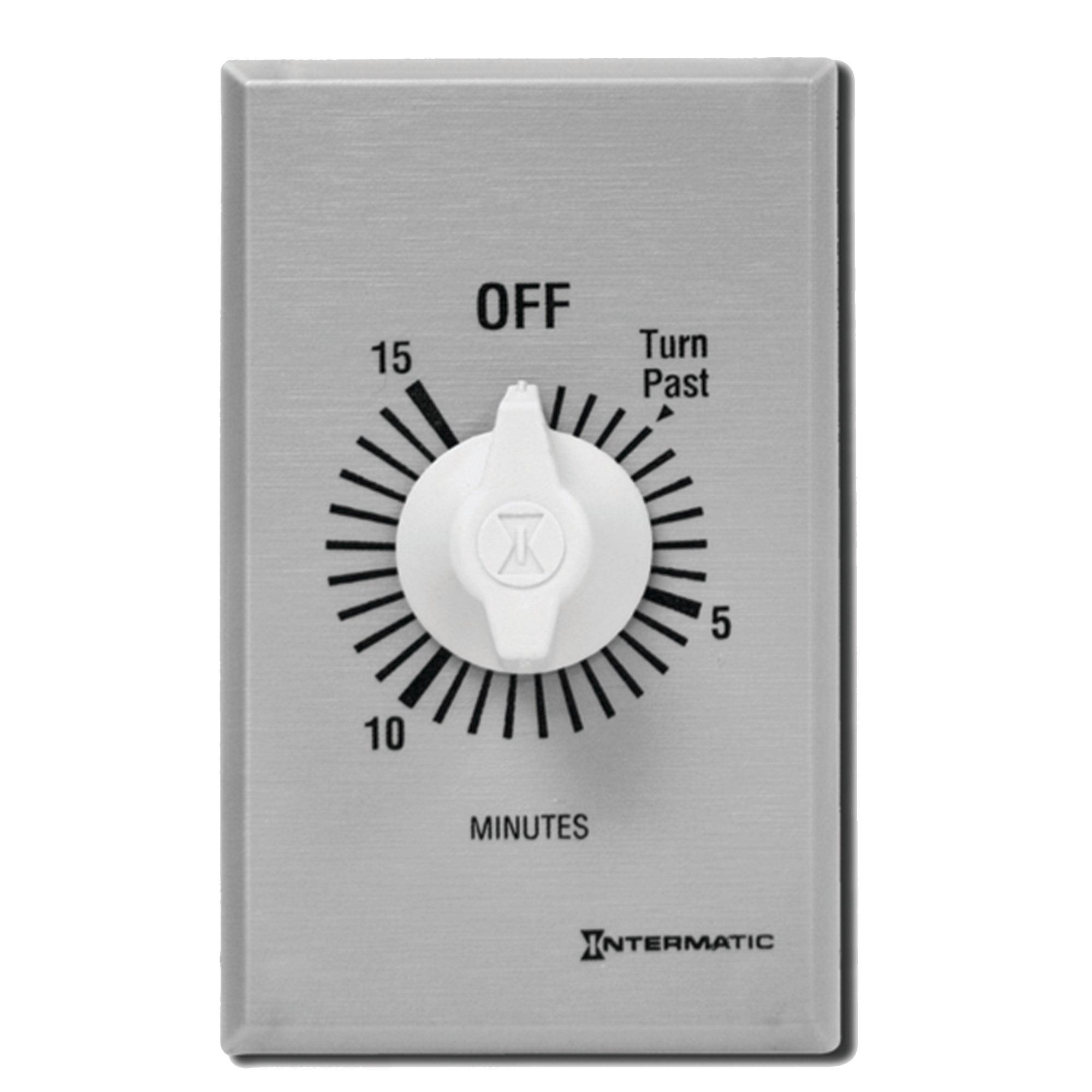 The FF Series Commercial Countdown Timers are designed to replace any standard wall switch and do not require electricity to operate. These energy-efficient switches automatically limit the ON times for fans, lighting, motors, heaters, and other energy consuming loads. A commercial "brushed metal" look plate (plastic construction) meets NEC requirements. *NOTE: Not for use with sunlamps, saunas, or loads that could cause personal injury if timed incorrectly.
