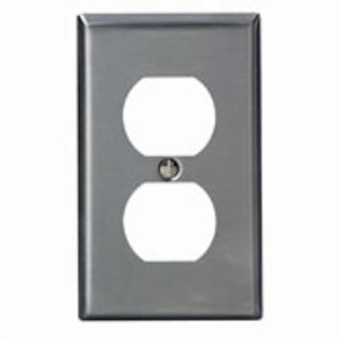 Leviton® Combination Wallplate, Standard Size Traditional, 1 Gang, 4-1/2 in H x 2-3/4 in W Size, 1.526 in H x 1.134 in W Duplex Receptacle Cutout, Surface Mounting, 0.187 in Thickness, 430 Stainless Steel, Stainless Steel, Brushed Finish