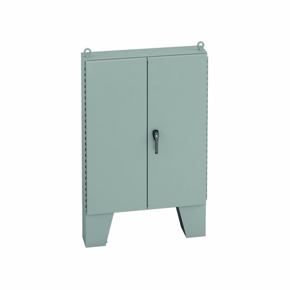 B-Line Ground Mount Enclosure, 2-Door, 60 in Width, 12 in D, 60 in Height, NEMA 12/IP65, Hinged Cover, 55.87 in W x 55.87 in H Panel, Lock: 3-Point, Floor/Leg Mount, Carbon steel, Polyester Powder Coated, Gray