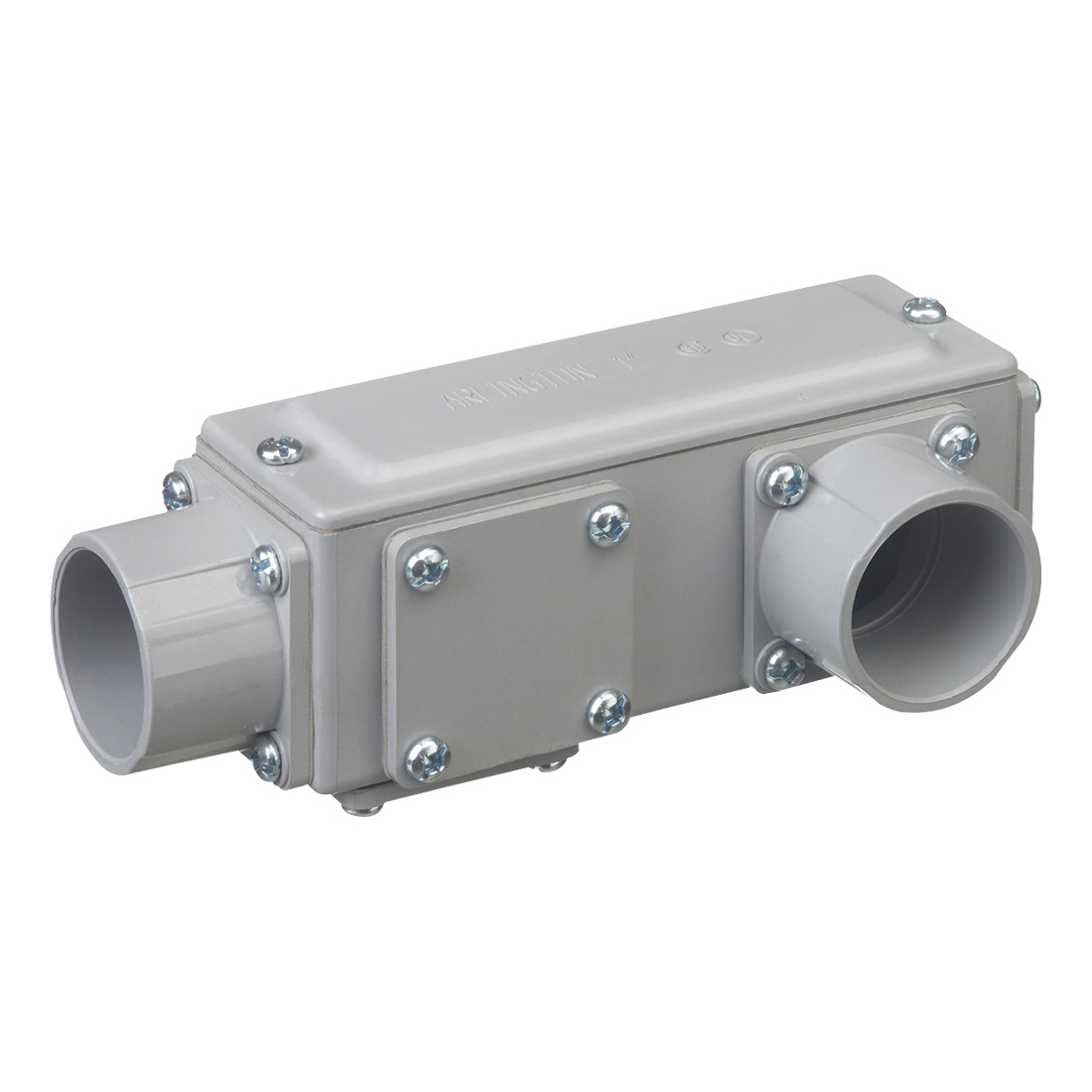 Arlington AnyBODY™ Conduit Body, 5-in-1, LB Body, 1 in Hub, 12 cu-in Capacity, Threaded x Set Screw Connection, Plastic, Gray, 6.56 in L x 3.26 in W x 2.24 in H Dimensions