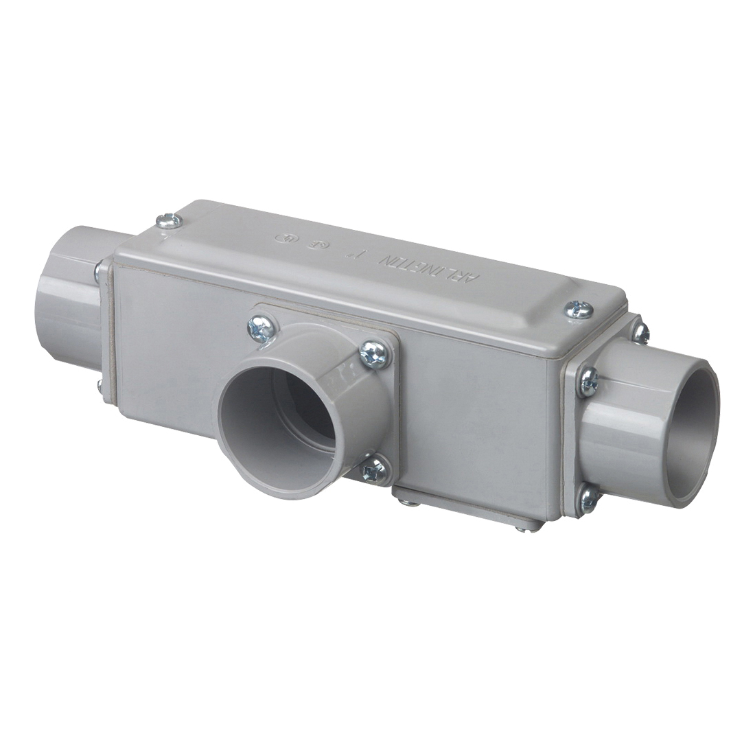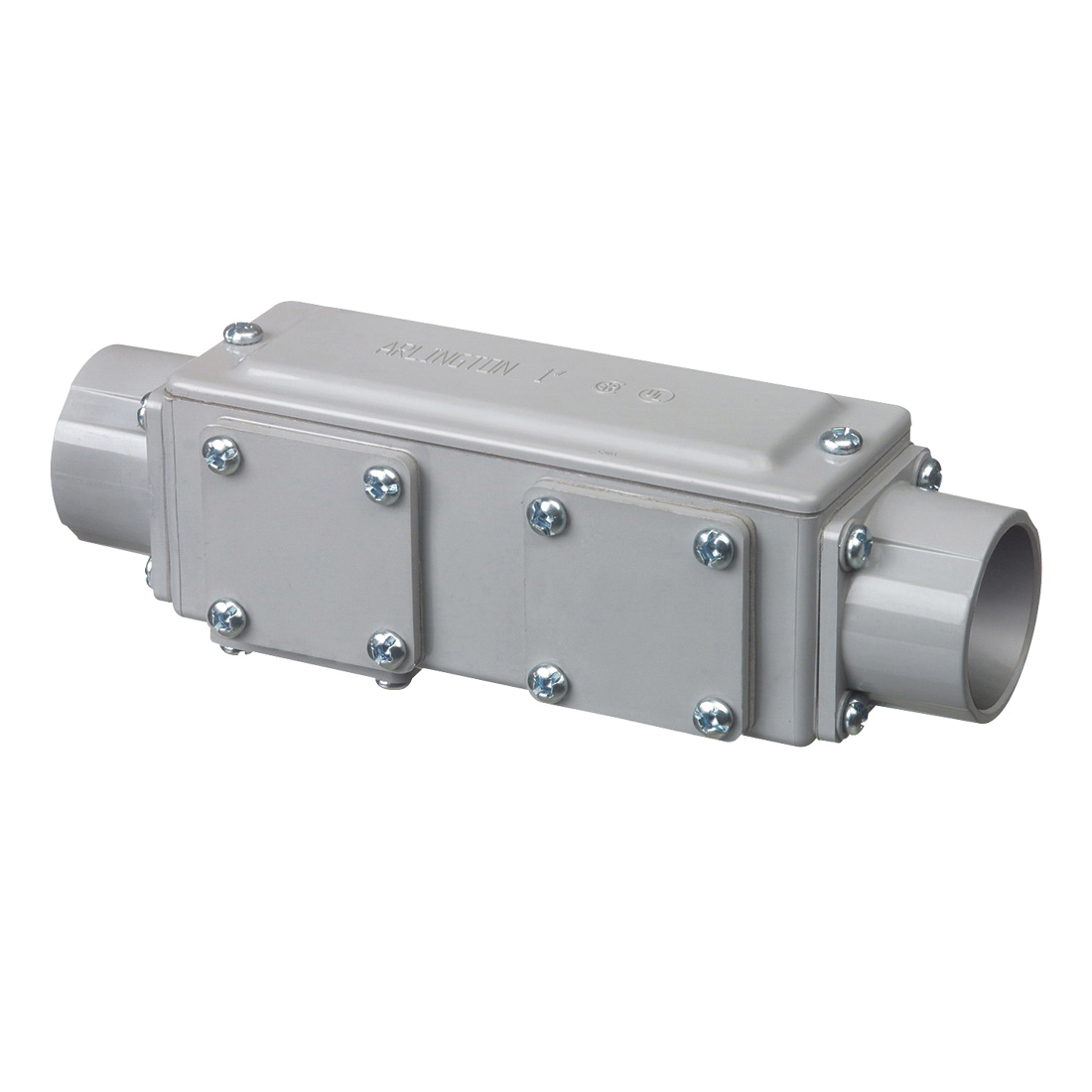 Arlington AnyBODY™ Conduit Body, 5-in-1, LB Body, 1/2 in Hub, 2 Hubs, 4-1/2 cu-in Capacity, Threaded x Set Screw Connection, Plastic, Gray, 5.15 in L x 2.56 in W x 1.75 in H Dimensions