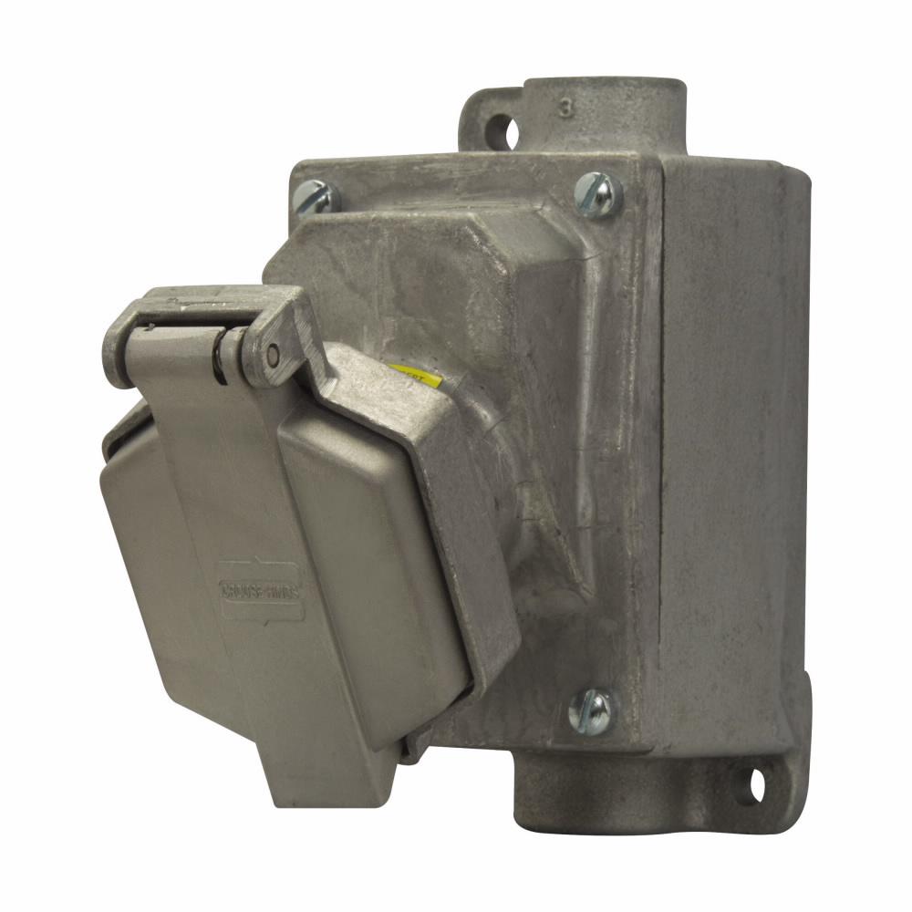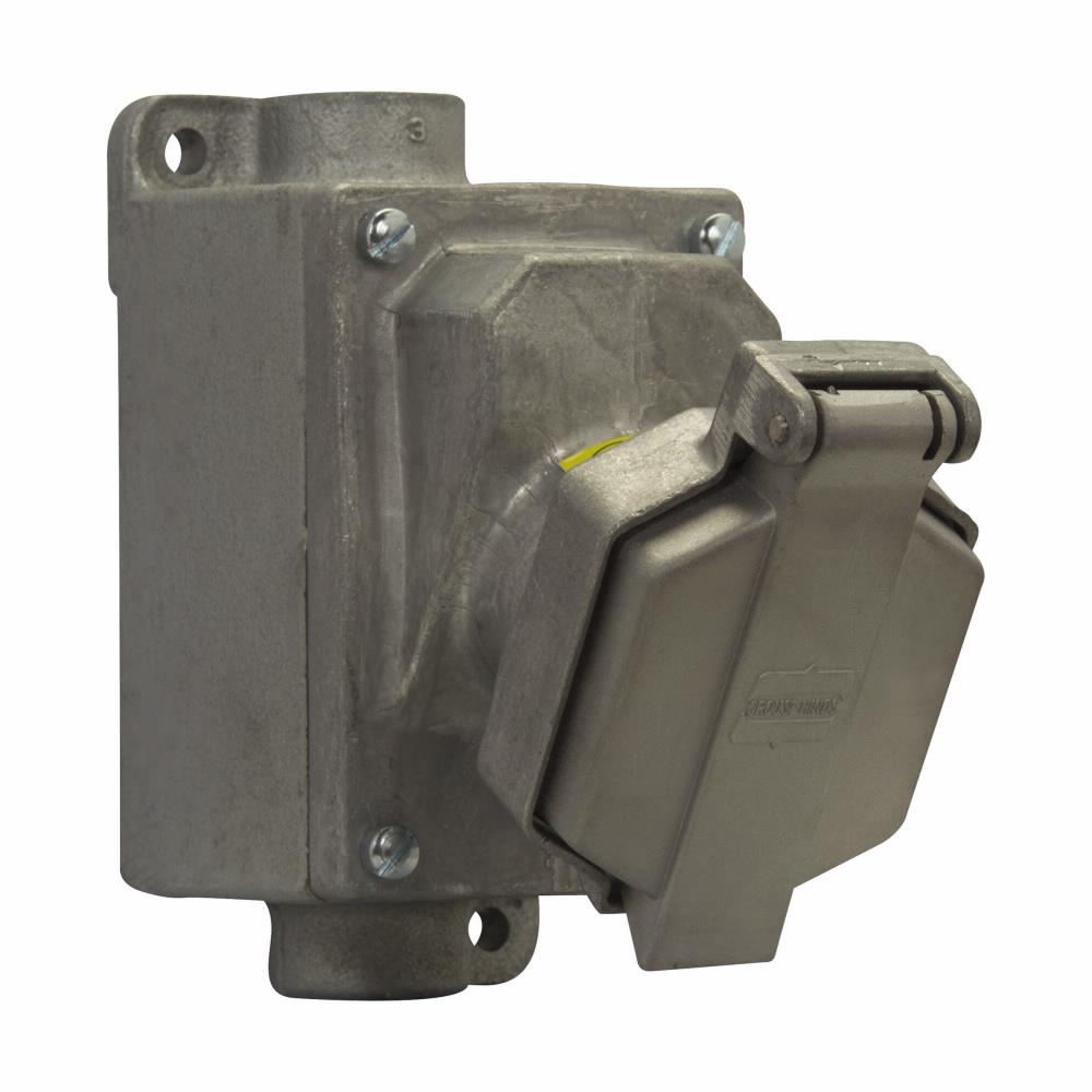 Crouse-Hinds Ark Gard® Receptacle Assembly, 1-Gang Explosionproof Feed Through Interlocked, Series: ENR Value, 125 VAC, 15 A, 3-1/2 in L x 8 in W x 6-23/32 in H Dimensions