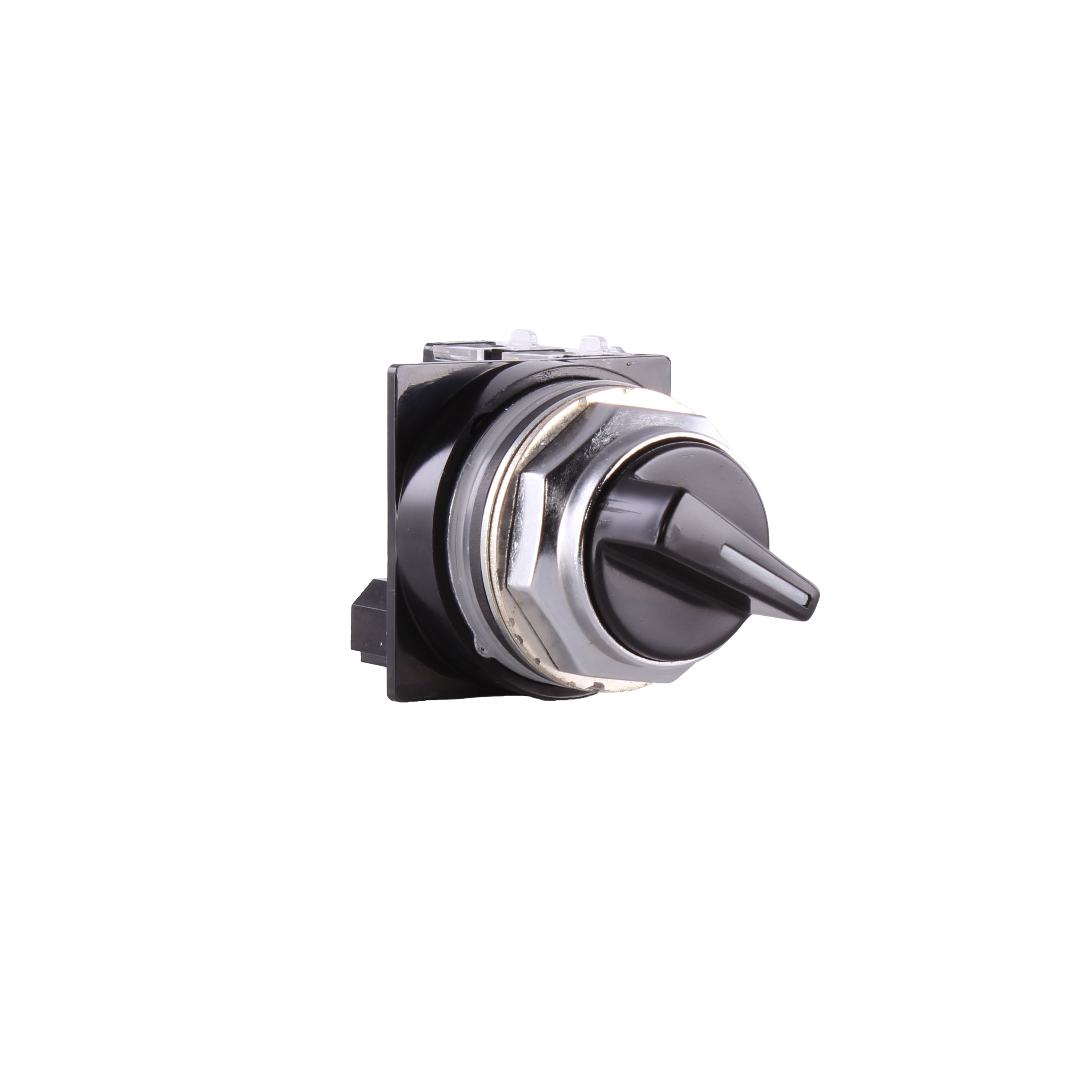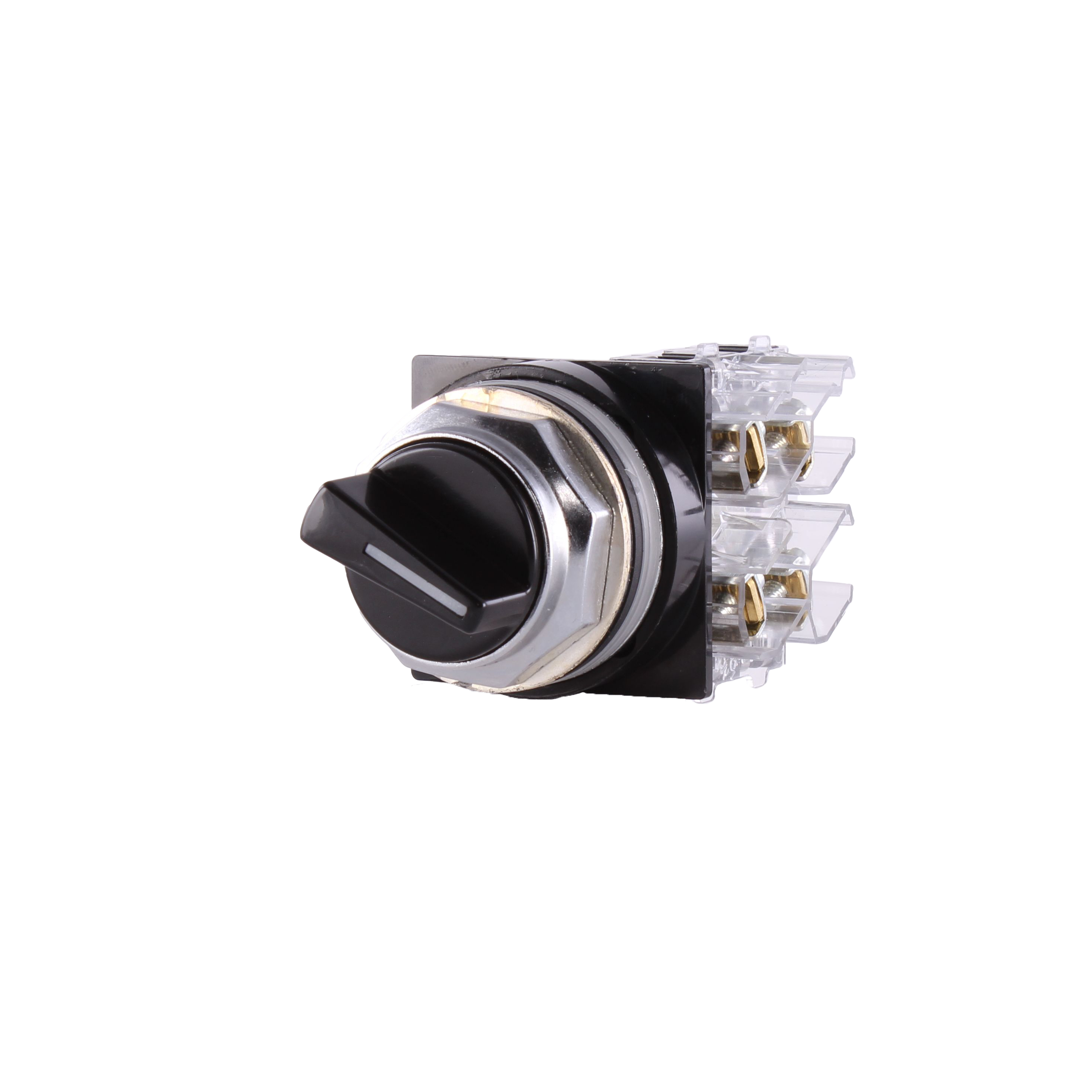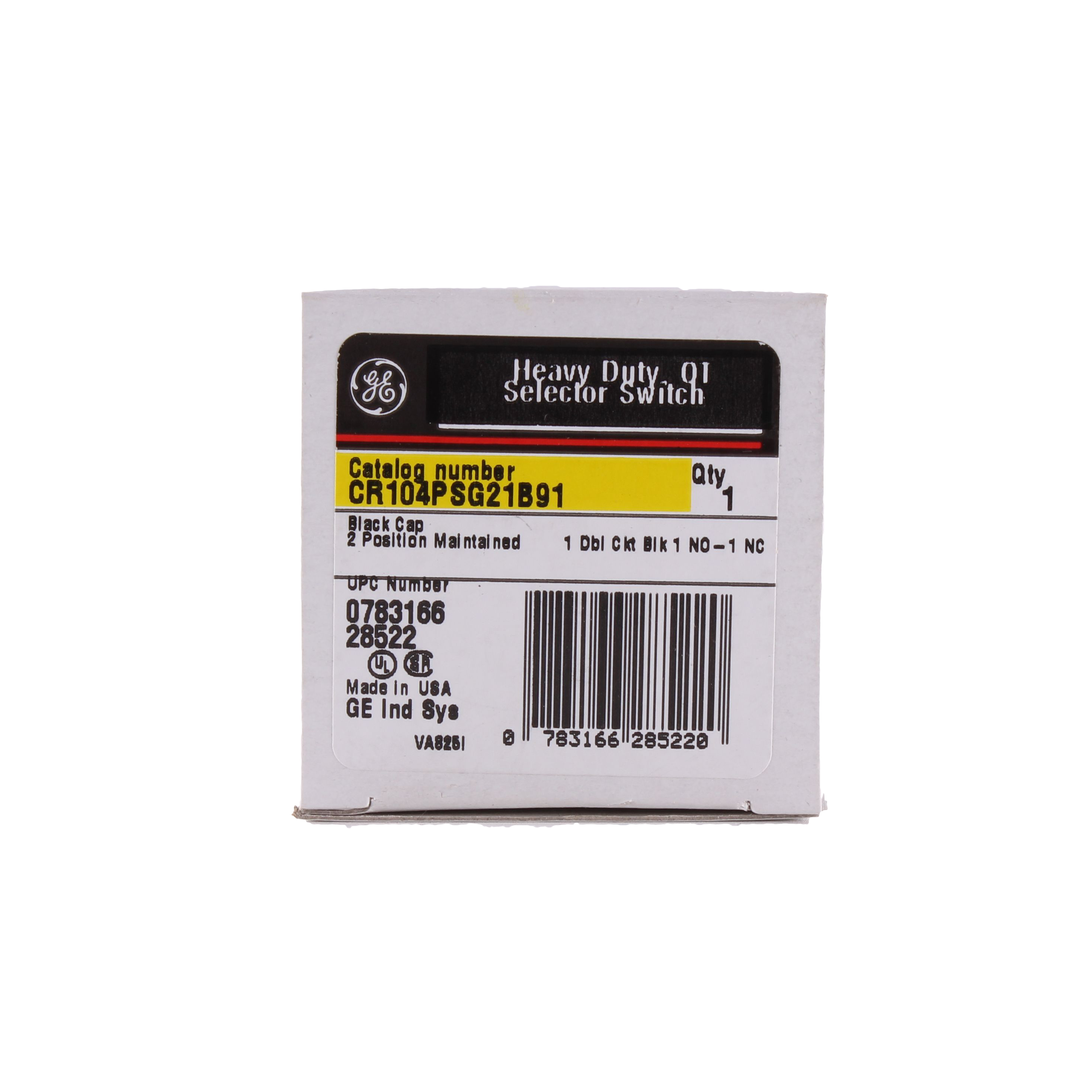 GE Non-Illuminated Selector Switch, Heavy Duty Oiltight/Watertight, Series: CR104P, 30 mm Size, 1NO-1NC Contact Configuration, Maintained Contact Mode, 10 A at 600 VAC/VDC Contact, 2 Positions, Left to Right Throw, Cam Code: 1, Legend: Off/On, Bezel/Housing: Chromium Plated Zinc Ingot, Knob Actuator, Threaded Terminal, NEMA 1/3/3R/4/4X/12/13 Enclosure, Snap-On Mounting, Nylon, Black, Environmental Conditions: -13 to 158 deg F Operating Temperature