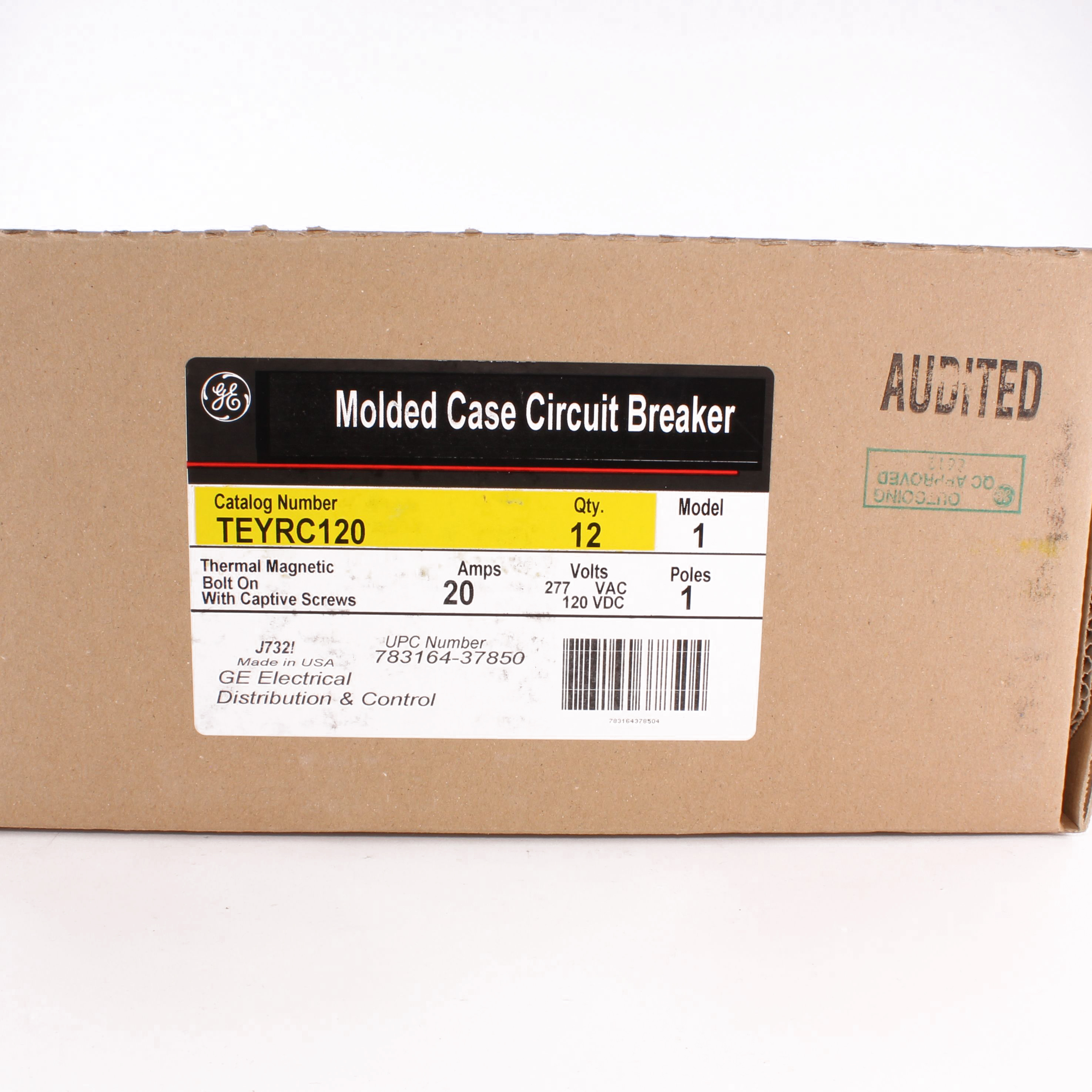 GE Lighting Panel Circuit Breaker, Compact Remote Operated, Series: TEY, 277 VAC, 20 A, 50/60 Hz Frequency, 14 kA Interrupt, TEYRC Frame, Thermal Magnetic Trip, 1 Pole, 1 ph, Handle Actuator, Screw Terminal Connection, Bolted-On Mounting, Plastic
