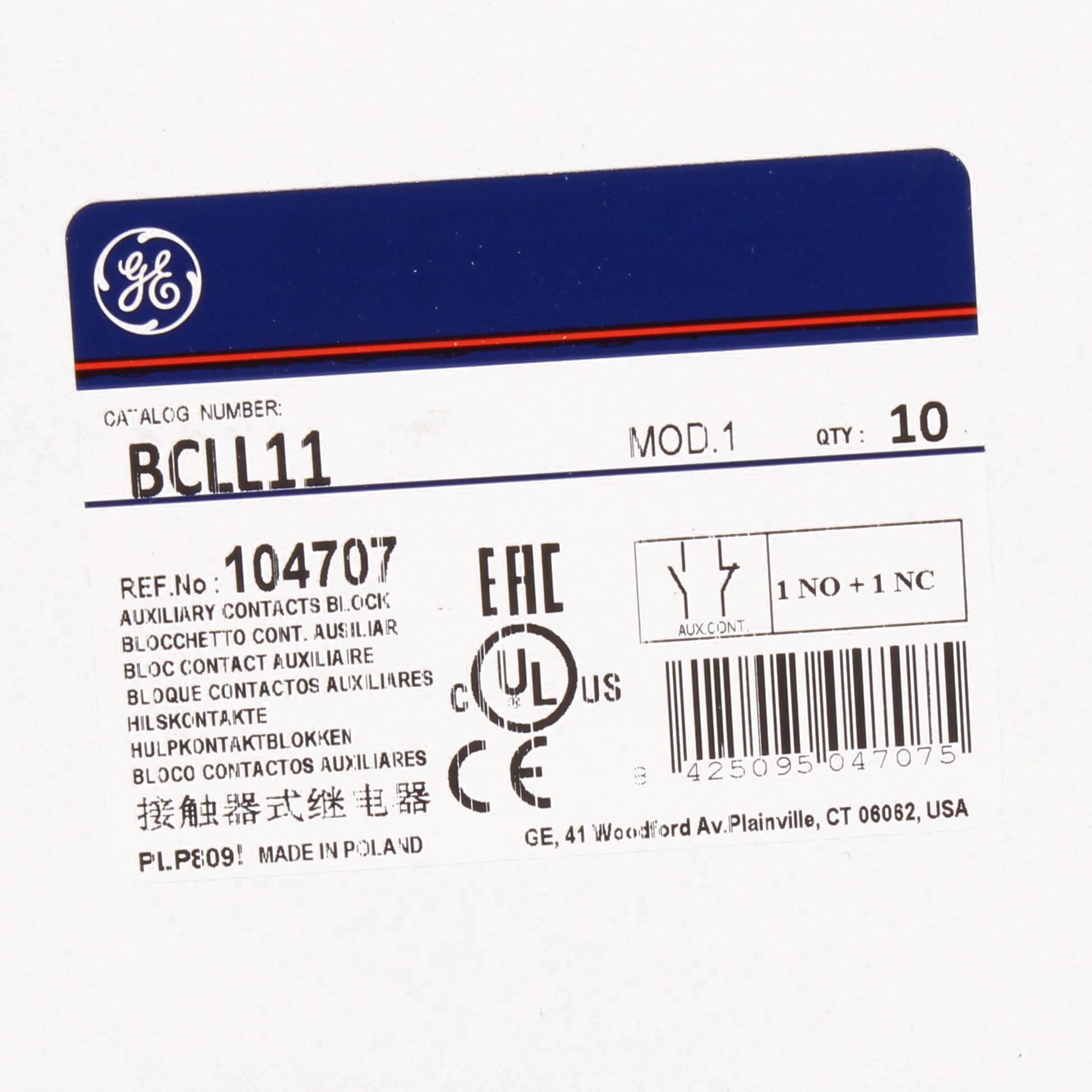 GE BCLL11 CL Series Auxiliary Contact Block, 1NO-1NC Contacts