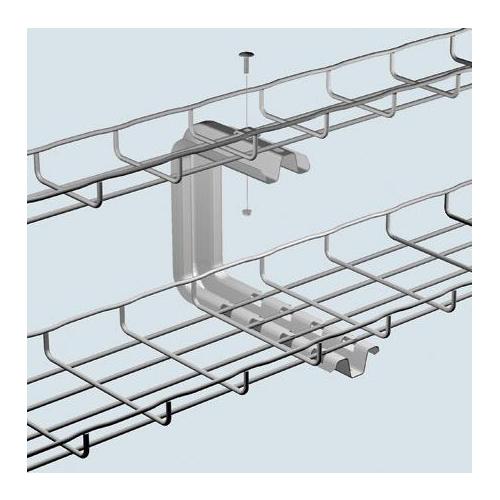 Cablofil® C-Bracket, Series: FASC, 14.9 in Length, 4 in Width, 8.268 in Height, Ceiling Mounting, For Use With: 12 in W Wire Mesh Cable Tray, Carbon Steel, Pre-Galvanized