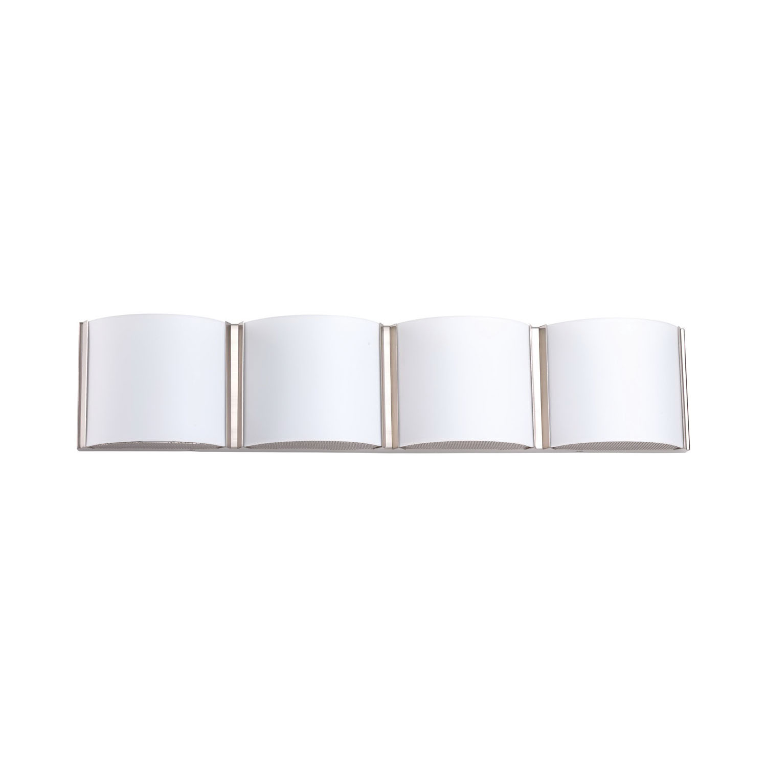 Progress Lighting® Progress LED Wall Sconce, Casual/Traditional, Series: Arch, 120 VAC, 0.567 A, LED Lamp, 17 W Lamp, 4 Lamps, 60000 hr Average Life, Gray Light, 3000 K Color Temperature, 90 CRI, White Acrylic Shade, 1211 Lumens, Wall Mounting, Steel Housing Material, Brushed Nickel Plated Housing Finish, 6 in H x 29 in W x 3 in D