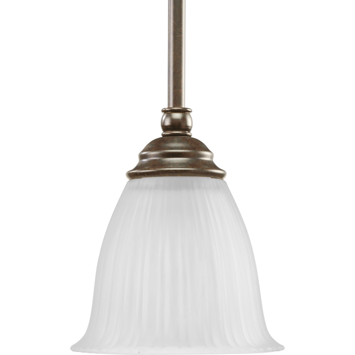 Progress Lighting® Mini Pendant, Series: Renovation, 120 VAC, Incandescent Lamp, 100 W Lamp, Medium Lamp Base, 1 Lamp, Etched Glass Shade, Ceiling/Stem Mount, Steel Housing, Forged Bronze Housing, 6 in Dia x 6-7/8 in H