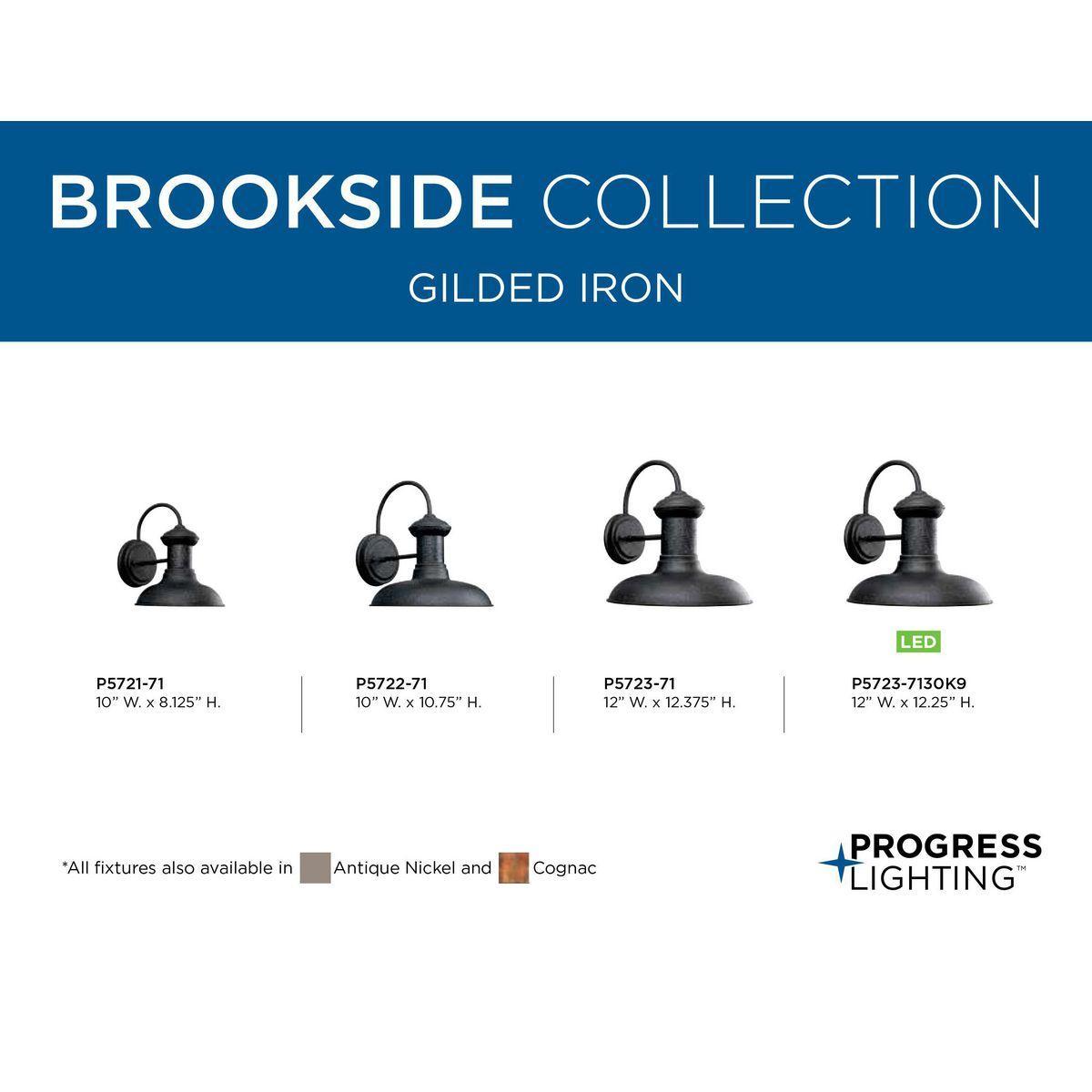 Progress Lighting® Wall Lantern, Classic/Traditional, Series: Brookside, 100 W, 120 VAC, A19 Incandescent Lamp, Medium Lamp Base, Black, Gilded Iron/Painted Lamp, 12 in W x 13-1/8 in D x 12-3/8 in H, 1 Lamp, Aluminum/Steel