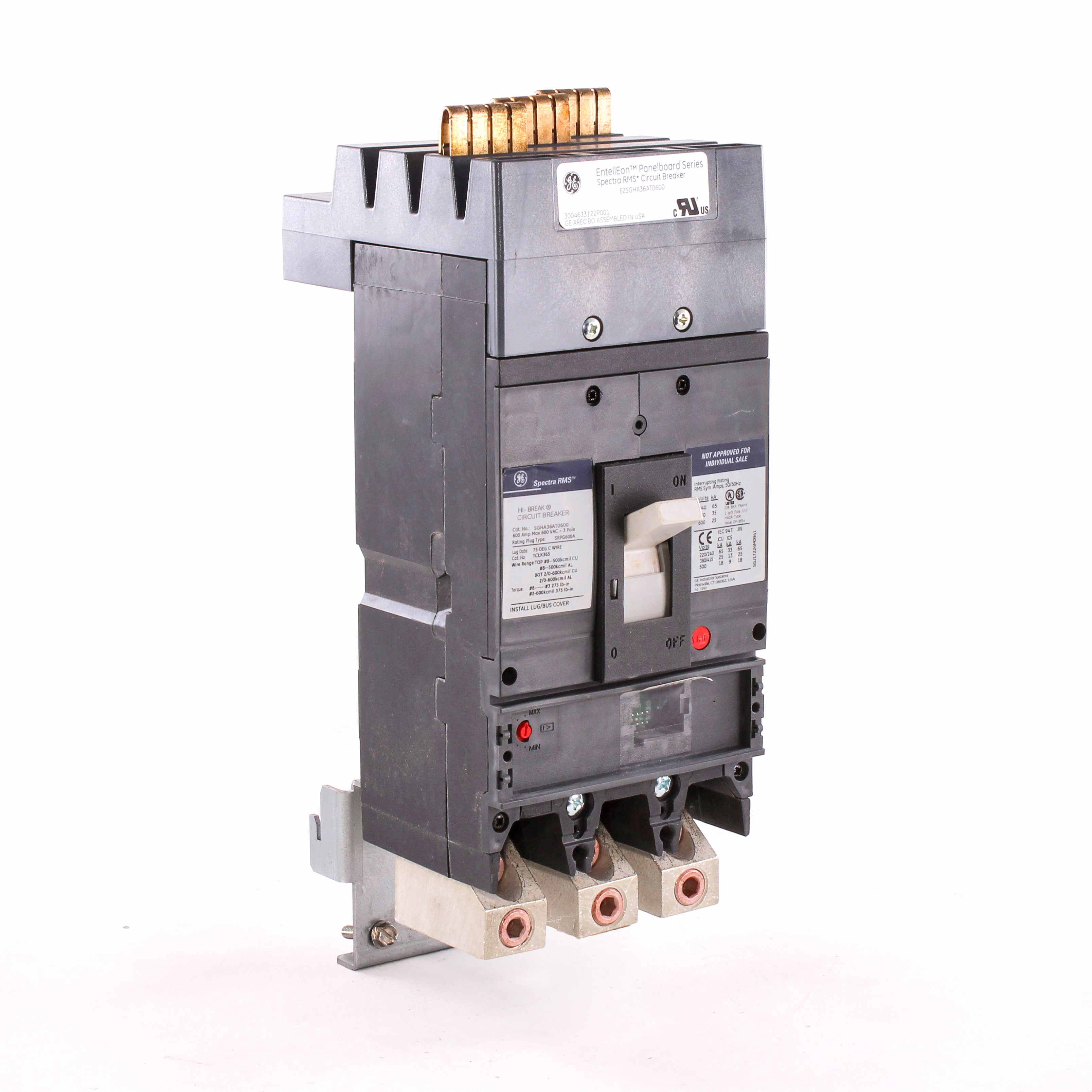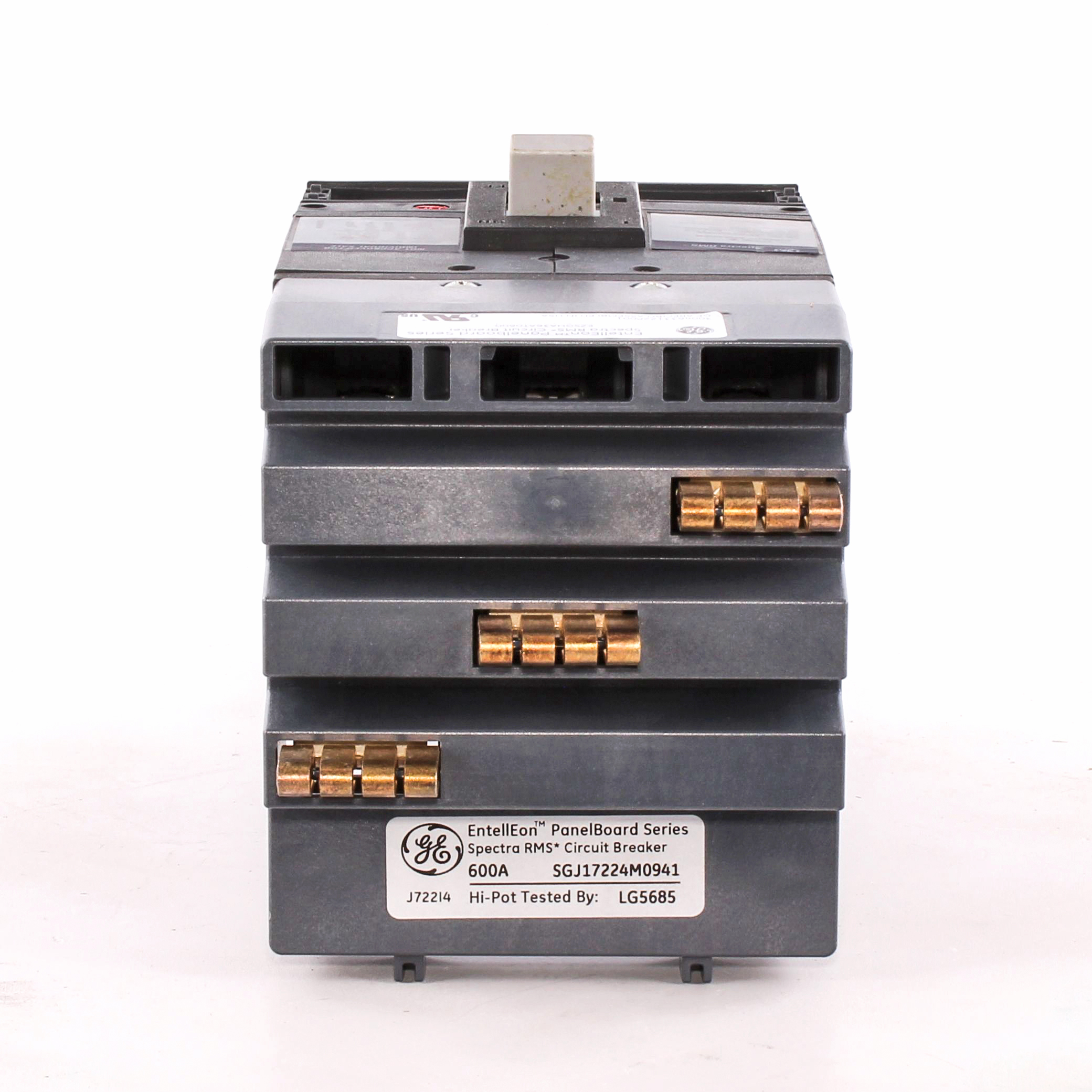 GE EntellEon Spectra™ RMS Feeder Circuit Breaker, Type EZSG Horizontal Standard Continuous Load, 600 VAC, 600 A, 50/60 Hz Frequency, 25 kA Interrupt, SG600 Frame, Electronic Trip, 3 Pole, 3 ph ph, Toggle Handle Actuator, Lug Connection, 2/0 AWG to 500 kcmil, 8 AWG to 600 kcmil Wire, NEMA 1/3R/4/4X/12 Enclosure, Panel Mounting, 104 deg F, 10.09 in H x 5.5 in W x 3.81 in D Dimensions