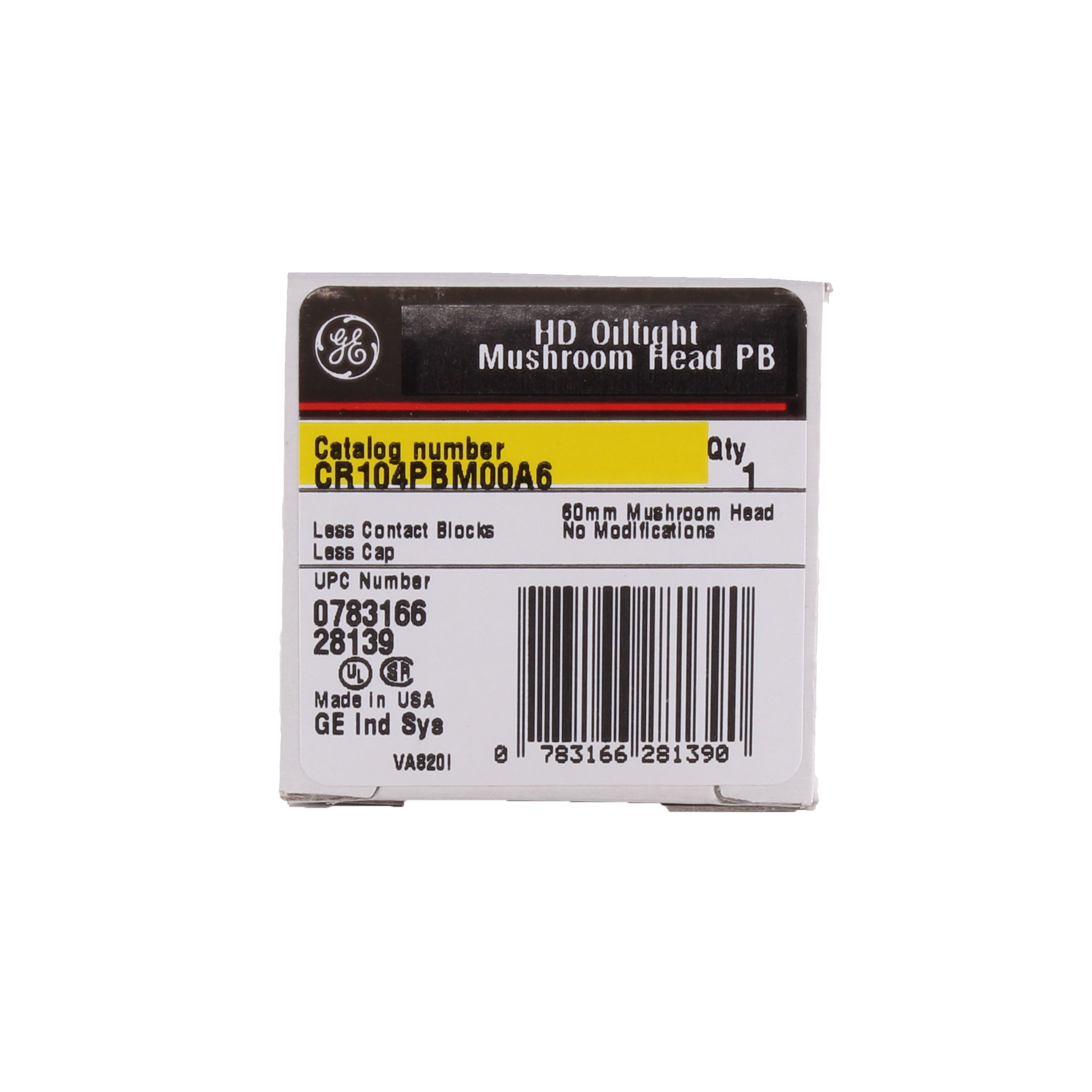 GE Non-Illuminated Pushbutton Operator, Heavy Duty Standard Oiltight/Watertight, Series: CR104P, 30.5 mm, Momentary Contact Mode, 10 A at 600 VAC/VDC Contact, Mushroom Head Button Operator, NEMA 1/3/3R/4/4X/12/13, Screw Terminal, Front Panel Mount, Bezel/Housing: Chromium Plated Zinc Ingot, -13 to 158 deg F, Nylon