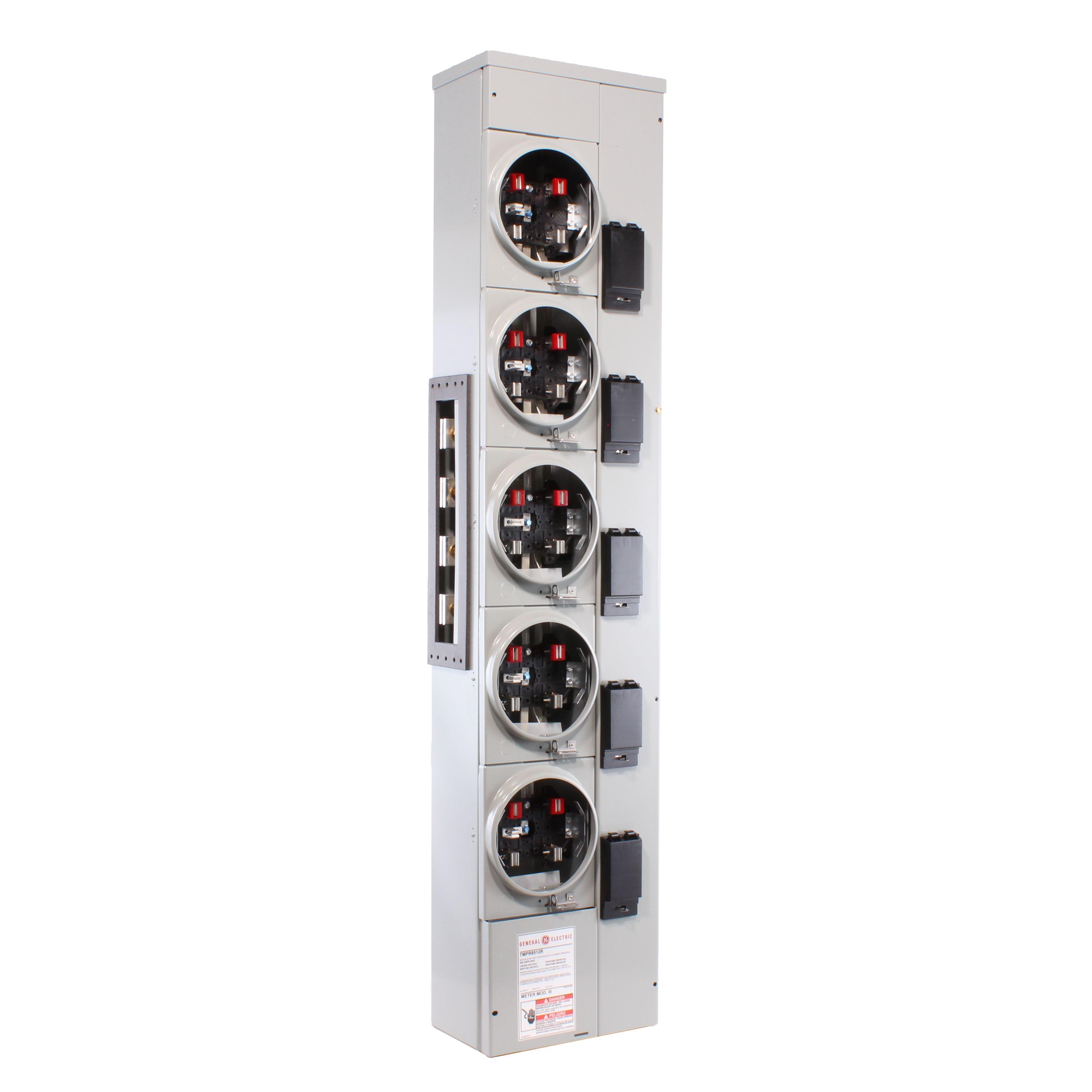 GE Meter Mod™ III GE Meter Stack Module, 5-Socket Rainproof Ringless, 240 VAC, 125/800 A, 1 Phase , 4 Wires, 14 to 4 AWG Wire, NEMA 3R, 57.5 in H x 12.26 in W x 6.62 in D