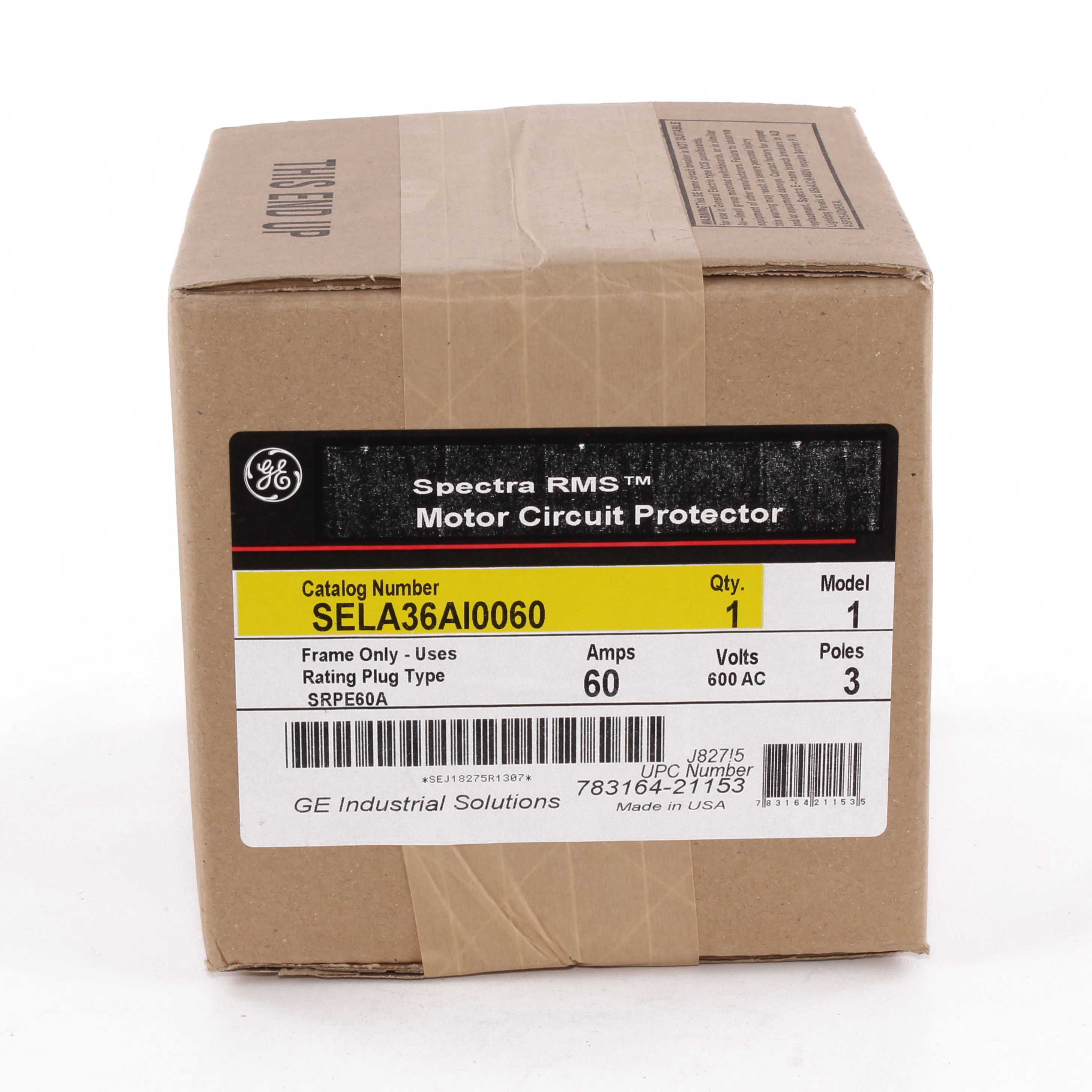 GE Spectra RMS™ Mag-Break® SELA36AI0060 Type SEL Standard Continuous Load Current Limiting Motor Circuit Protector, 600 VAC, 60 A, 25/65/100 kA Interrupt, 3 Poles, Magnetic Trip